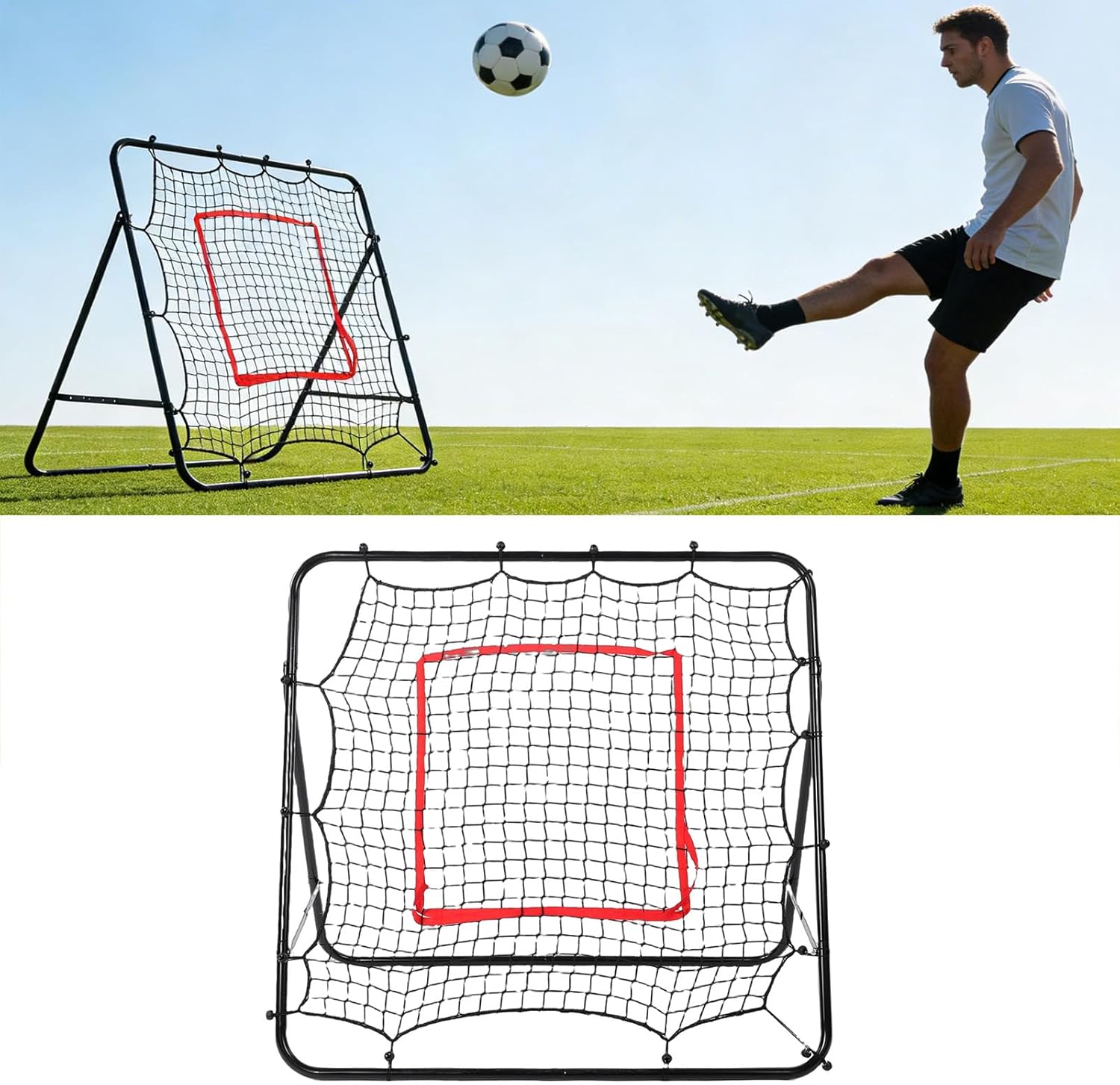 Multi‑Sport Rebounder for Volleyball, Soccer, Baseball and Softball: Made from a sturdy steel frame and durable PE net—designed to improve athletic performance across multiple sports with stable, long‑lasting construction. Efficient Training with Customizable Course Design: The softball pitchback net can maximize training efficiency with a spacious rebound surface and simple setup, helping athletes make the most of every practice session. Skill Development for Multiple Positions: This baseball rebounder net enhances serving, passing, dunking, and saving for volleyball; passing, receiving, and ball control for soccer; and positioning, pitching, and hitting for baseball/softball. Adjustable Angle and Target Center for Accuracy: The baseball pitchback net's angle‑adjustable frame improves reaction time; adjustable target center helps hone precision and for advanced skill building. 15‑Minute Assembly and Compact Storage: This softball rebounder net is easy snap together design assembles in just 15 minutes. Folds flat for convenient storage after training—ideal for home, gym, or field use. Specification: Item Type: Baseball Rebounder Net Material: Steel, PE Assembly Size: Approx. 1.2x1.2m / 3.94x3.94ft Packing List: 10 x Assemble Steel Pipes 1 x Net 1 x User Manual