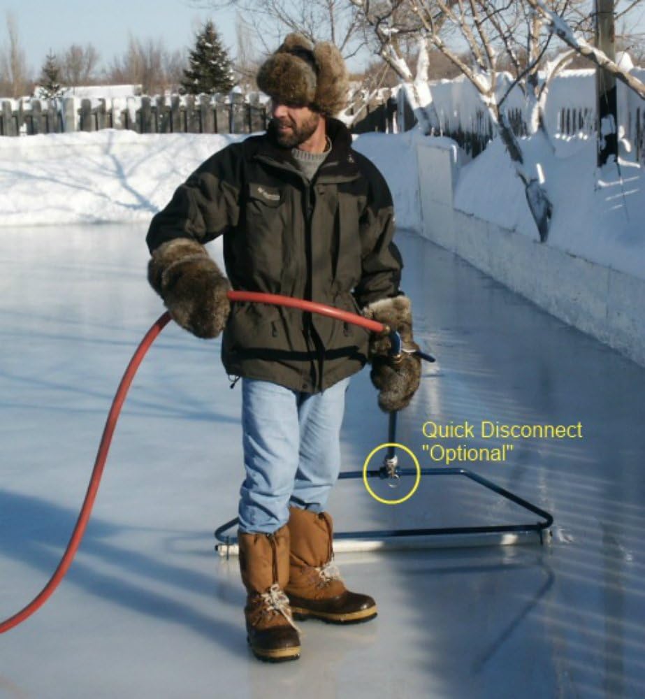 The NiceIce resurfacer works on any surface. It makes ice like glass, in less time, less water and less hassle than just the hose. Thin controlled applications of water result in super smooth ice on any rink. 52" Model recommended for rinks 4,000 to 10,000Sf. (Includes one resurfacing mat) Optimum performance requires water pressure of at least 7 Gallons per Minute or more.... The "NiceIce" resurfacer is a portable, hand-operated tool that makes creating and maintaining a high-quality ice rink a snap. The Patented NiceIce" resurfacer consists of an easy to handle galvanized steel pipe frame that serves as a conduit for water feed by a garden hose systematically distributing the water evenly onto the ice and smoothed on contact by the NiceIce" resurfacing mat. Thin, controlled applications of water produce a Super Smooth Surface to any rink in minutes.