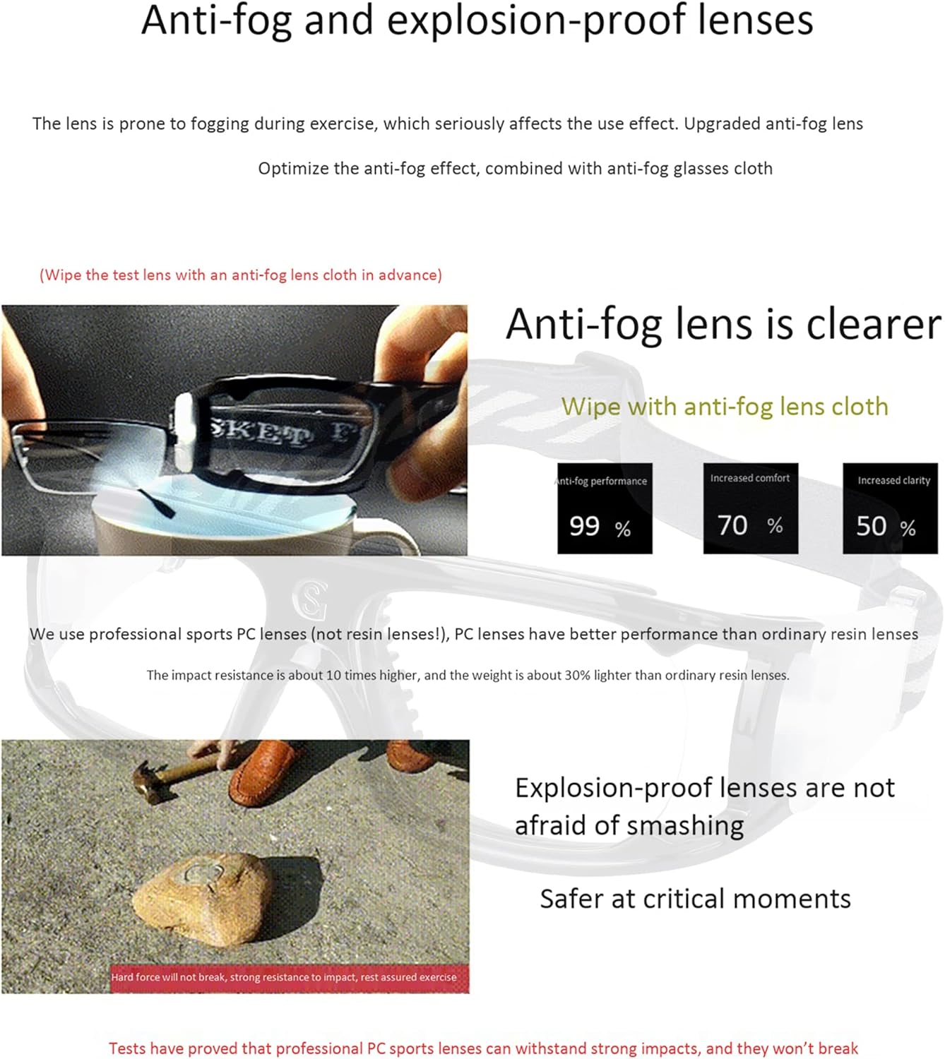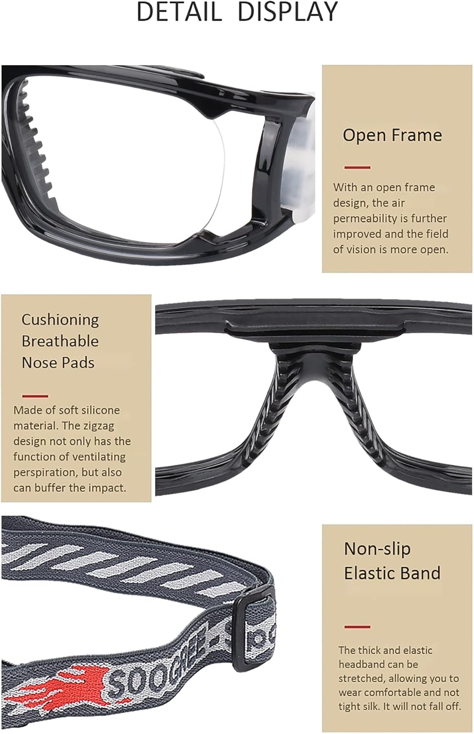Products Include::1 x Goggles 1 x Case 1 x Cloth 1 x Glasses protective bagMaterial:●Protective eyewear for soccer PC lens material, anti-Fog lens Provide full protection for your eyes during exercise;Basketball goggle for men and womenFunction:●The dustproof,windproof lens is durable and provides a clear vision and high impact protection for the eyes●The anti fog lens exposed to water vapor is not prone to fogging ●Even if it is continuous You can maintain a clear vision even after wearing it for a day; Perfect anti-splash effect to achieve the preventive effect ●The adjustable and detachable glasses strap is made of high-quality nylon and can be adjusted according to the head circumference;In this way, the glasses can fit everyone's head circumference and close to the head, effectively avoiding the risk of glasses falling. In the process of strenuous exercise, the service life of the glasses can be greatly extended to a certain extentFeature:● The clear lenses are long-lasting and offer a clear view and high-impact protection for eyes●The lenses are not easy to fog when exposed to water vapor●You can keep a clear view even if you wear it continuously for one day.Perfect for anti-splash, and achieve the preventing effectTips:●Pls carefully clean the lens with a soft tissue when cleaning your glasses●The battle will inevitably bloody injuries, particularly important for the protection of key parts, The consequences disastrous. For themselves, for others, to care about their friends, you need to use immediately "armor" to arm your fragile glassesSales Service:●We aim to provide customers the best shopping experience if you run into any issue with our products or service for any reason, please feel free to get in touch with us via amazon email