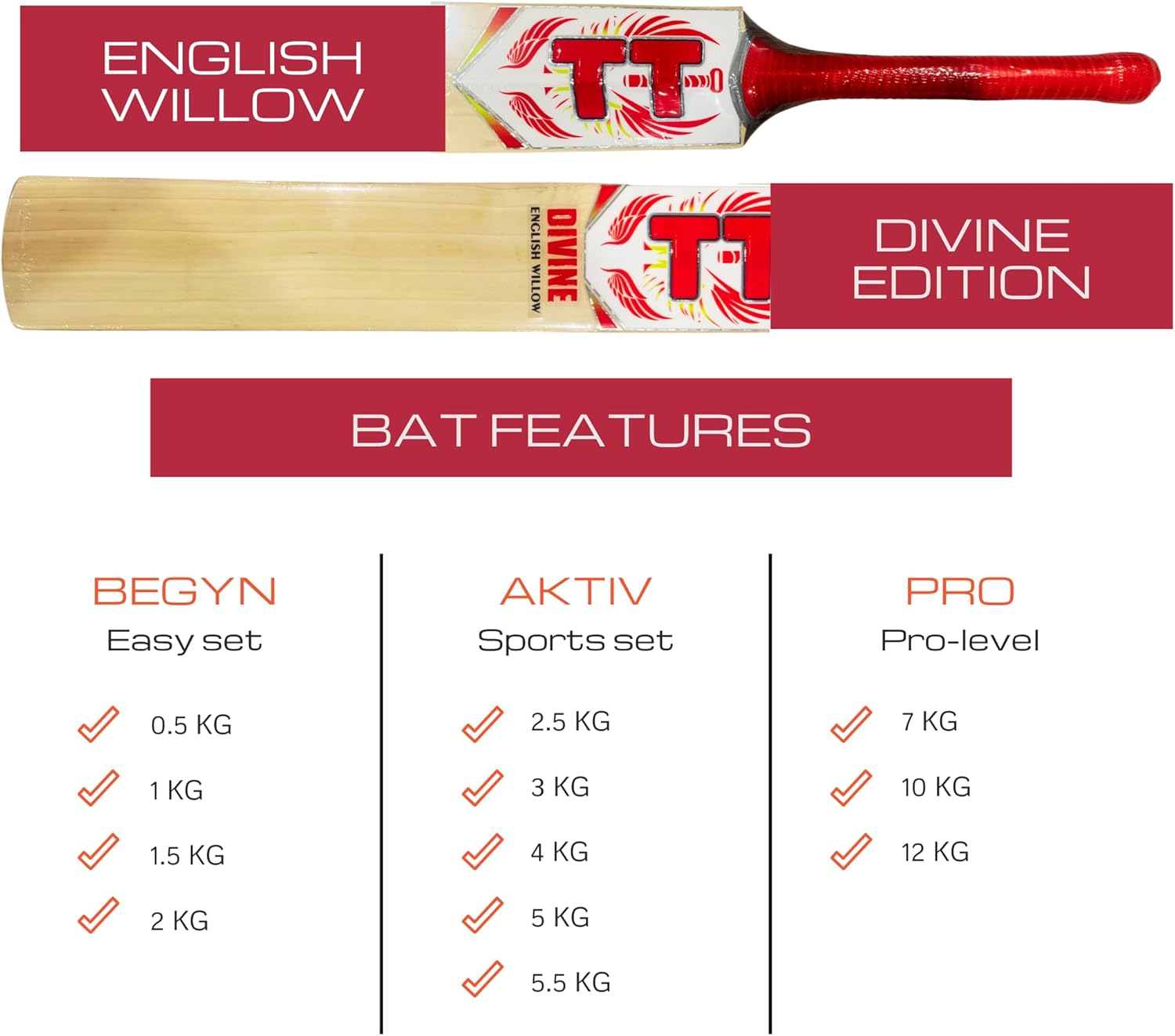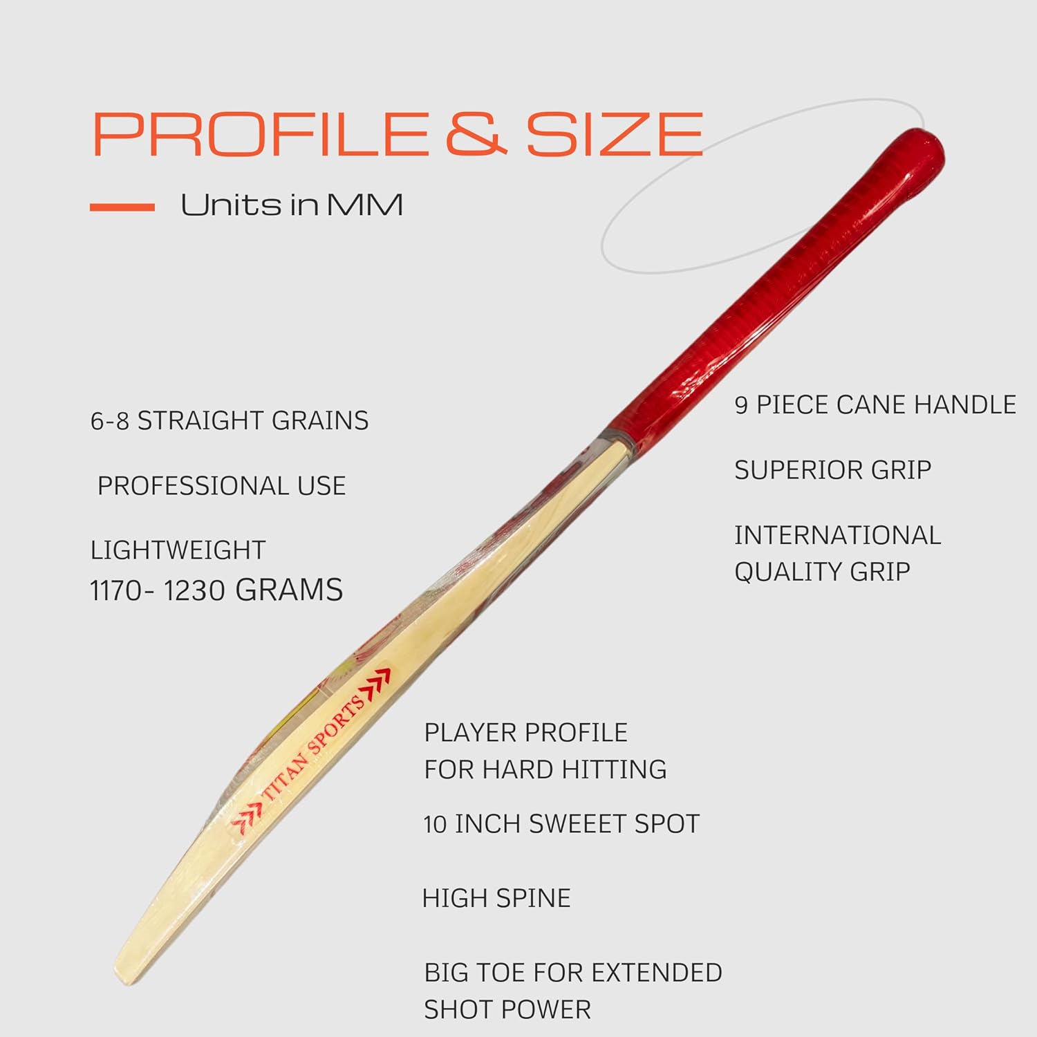 Experience next-level performance with the Titan English Willow Grade 3 - Divine Cricket Bat, designed for aspiring and seasoned cricketers who demand power, precision, and durability without breaking the bank. Crafted from Grade 3 English Willow, this bat offers a fine balance between playability and price. The bat features a mid-to-low sweet spot, making it ideal for front-foot and aggressive players. Its thick edges, lightweight pick-up, and handcrafted profile provide both confidence and control at the crease. Equipped with a Singapore cane short handle, this bat absorbs shocks effectively, providing a solid grip for quick responses. Whether you're playing league matches or training in the nets, the Titan Grade 3 bat is a dependable choice with professional craftsmanship at an accessible price. training at home, playing at your local club, or enjoying a casual game on the beach, the Titan Sports Premium Kashmir Willow Cricket Bat will not disappoint.