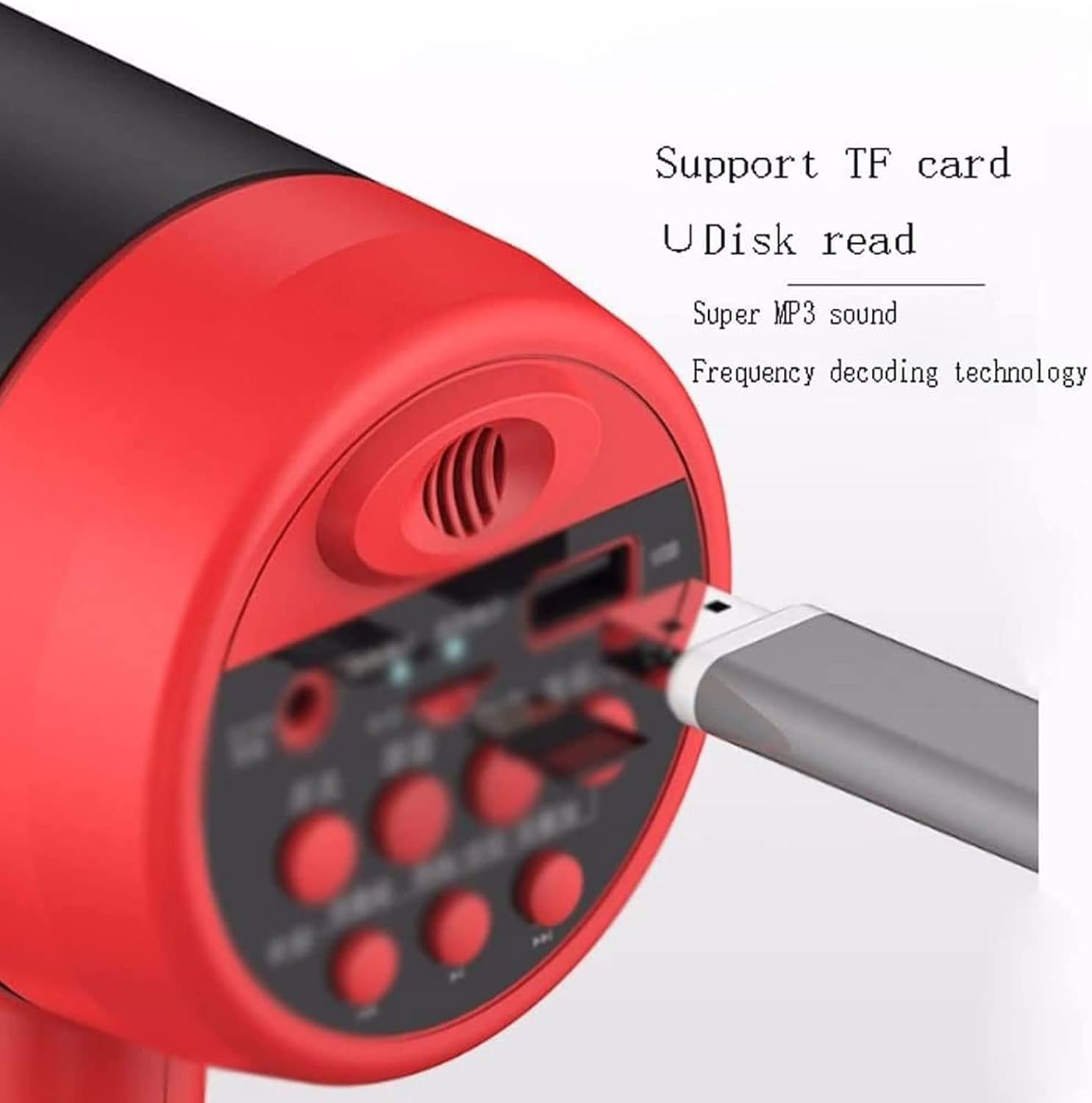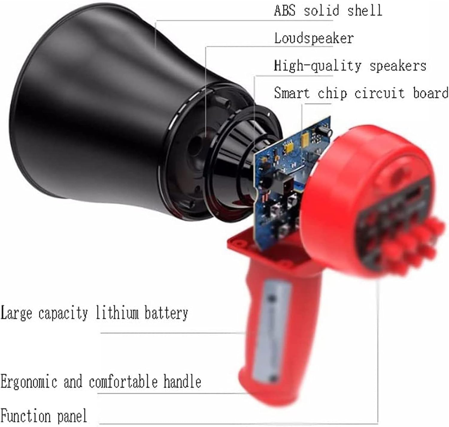 Product name: Megaphone/Handheld Voice AmplifierMaterial: ABSWeight: 500gPower: 30WSize: 18cmX9cmX20cmRecording time: 240 secondsFunction: Recording/Speaking/Amplification/U Disk/Memory CardSound distance: 600 metersType features: handheld megaphoneNote:1. Please check the size and color before purchasing.2. Please note that there may be a slight color difference due to different monitors, please understand.3. If you have any questions, please feel free to contact us.