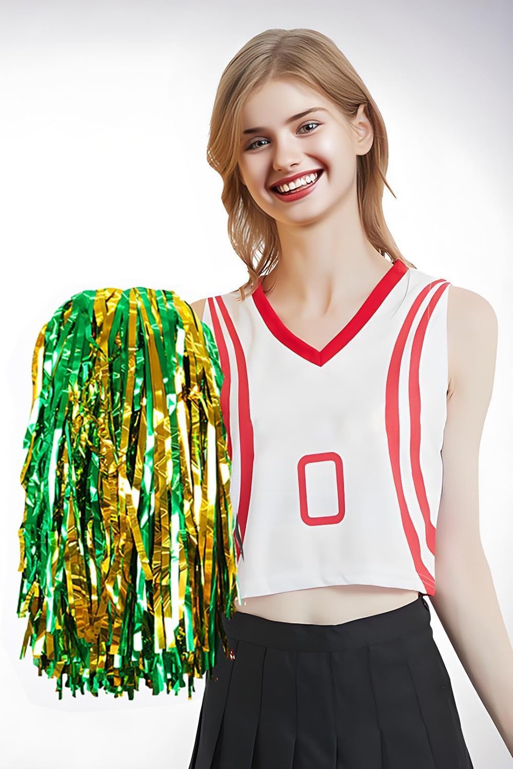 Product descriptionAre you worried about not having enough atmosphere and interaction?Want to make your team more united and dynamic?Cheerleader Poms --- Shiny appearance, double ring handle, and highquality silk strips make every scene full of vitality and passion!props to liven up the atmosphereThese cheerleading pom poms, which are suitable for almost all types of sports activities. Whether you are an athlete, a spectator or a performer, this cheer pom pom can bring you endless joy.Dazzling visual effectsThe color of the hand flower is bright and eye-catching. The cheerleading pompoms with better visual effects can instantly inspire your team spirit and help your cheerleading team shine on the field.Double loop handle designThe cheerleading pompoms feature a double-ring handle design, which notonly allows you to hold them more comfortably and easily during performances, but also effectively prevents the pompoms from accidentally falling, making your performances more stable and exciting.Not easy to fall off and fadeMade of highquality petmaterial. Each bright and fashionable silk strip is firmly fixed, notonly the color is long-lasting and does not fade, but also it is not easy to fall off. You can use it for a long time without worrying aboutquality issues.SpecificationMaterialPETSize: 30*12 cmNOTE:1. As each monitor has different display resolution and lightsettings, the color of the product may be slightly different, depending on the actual product.2. Due to manual measurement, an error of 1-3mm is inevitable!3.If you have any questions, please feel freeto contactus. We will try our bestto provide you with thebest experience.