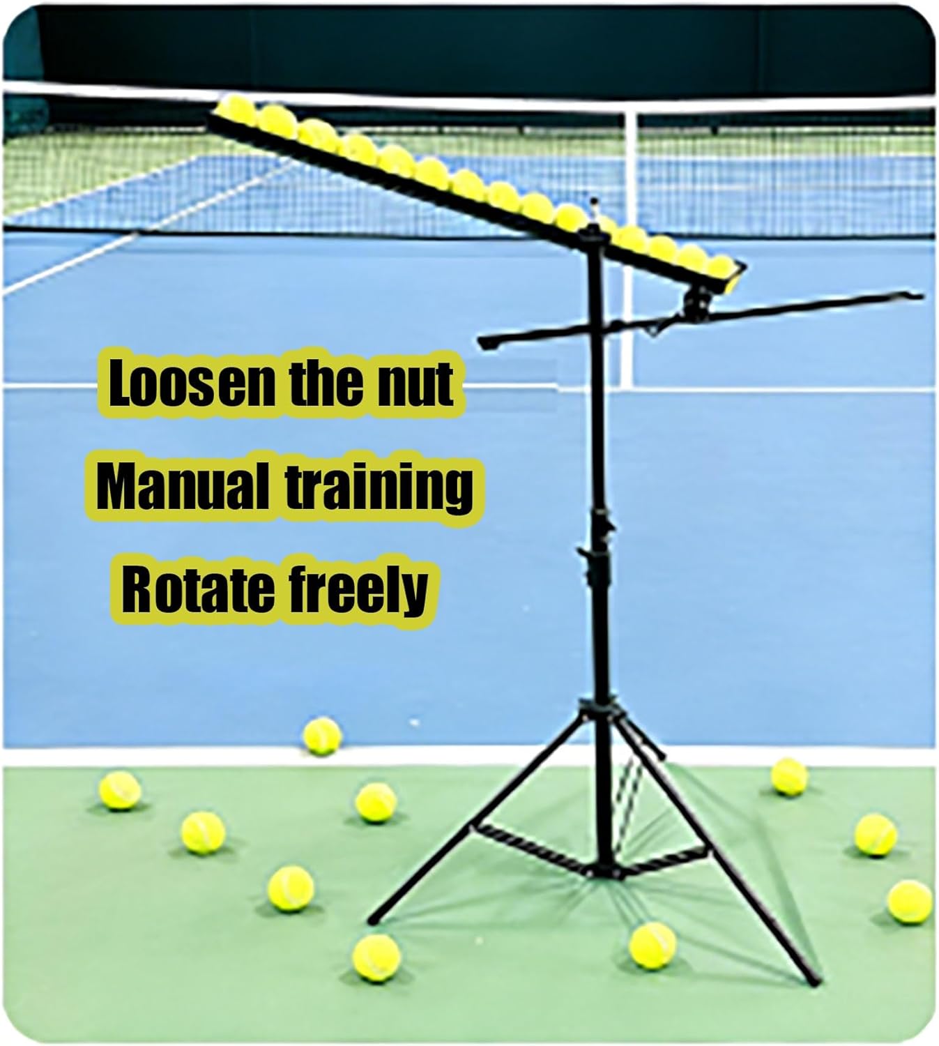 Single-Person Tennis Ball Drop Machine Swing TrainerProfessional single-person tennis training device: 1-3 meter height free adjustment + 360° rotating joint, covering multiple training postures including forehand, backhand, and volley; large-capacity ball storage slot + smooth ball outlet for continuous training without frequent ball replenishment.Reinforced screw lock structure for stable and shake-resistant support; non-electric manual operation, portable and easy to assemble and disassemble, suitable for home and court use.Packaging Information: Length 100CM × Width 17CM × Height 13CM, Net weight 4.5 kg, more convenient for transportation and storage.