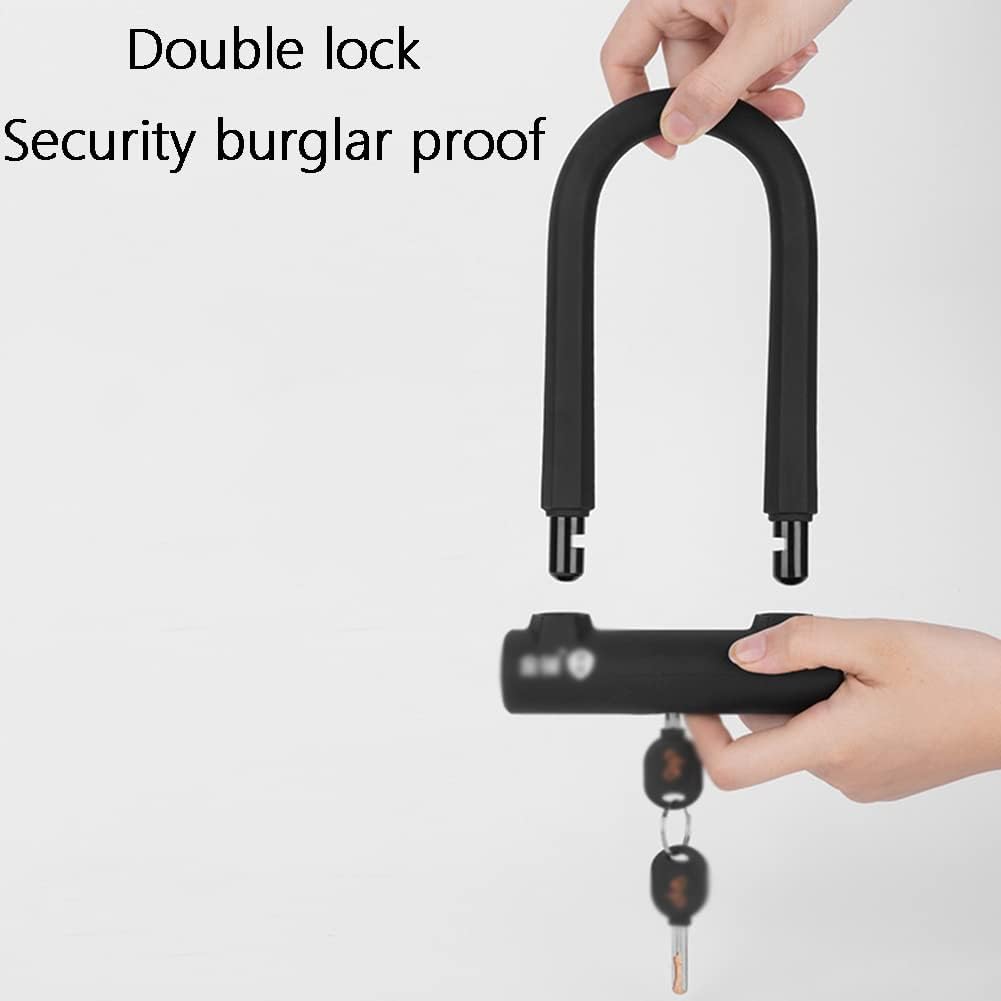 Gorgeous Gift: Looking for a great gift for family, friends, or cycling enthusiasts? This U-lock is the perfect choice, especially for those who need to park their bikes in public places. It’s a gift that’s sure to lock in their appreciation.product name:lockType of lock: U-lockLock type: Key LockLock body: all solidcolor of the product: blackProduct Size:12.7cm/5in x 19.5cm/7.6inItem weight:760 GFunction: Security lockKeys: Comes with 2 keysApplicable: bicycles, electric vehicles, motorcycles, etc.Includes: 1 lock, 2 keys, a fixed bracketAdded Convenience and Peace-of-Mind: No more stress of being locked out if you lose your primary key. For extra peace of mind, we’ve included two bike lock keys so that you can carry one and keep the spare at home or in the office, ensuring you won‘t be stranded without access to your bike.Wide Applications: Use the bike locks alone or paired with the steel cable--you make the choice! It‘s perfect for securing bicycles, children’s bikes, electric bikes, ladders, barbecue grills, sports equipment, lawnmowers, gates, and more. Make sure to check the size to ensure a perfect fit.