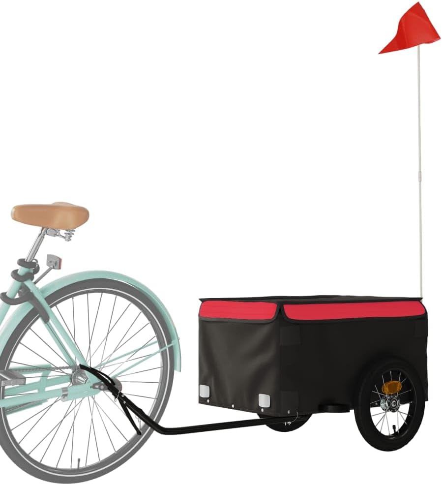 This versatile and sturdy bike cargo trailer will be ideal for transporting heavy goods thanks to its maximum load capacity of 30 kg. Sturdy material: Iron is a strong and hard material. It's a solid favourite in industrial and furniture construction. Made of iron, this bicycle cargo trailer is very sturdy and durable.Practical design: This bike cart with a maximum load capacity of 45 kg, is perfect for hauling heavy goods like luggage, plants, tools or groceries.Considerate design: The bike trailer has a tow bar that makes it easy to connect it to a bicycle. At the same time, a safety flag is included for extra visibility.Colour: Black and redMaterial: Iron, oxford fabric, PE (Polyethylene)Dimensions: 120 x 54 x 44 cm (L x W x H)Cargo compartment dimensions: 62 x 40 x 31.5 cm (L x W x H)Flag height: 169 cmWheels diameter: 29 cmMaximum load capacity: 30 kgDrawbar load capacity: 3-8 kgAssembly required: YesDelivery contains:1 x Bike cargo trailer1 x Safety flag