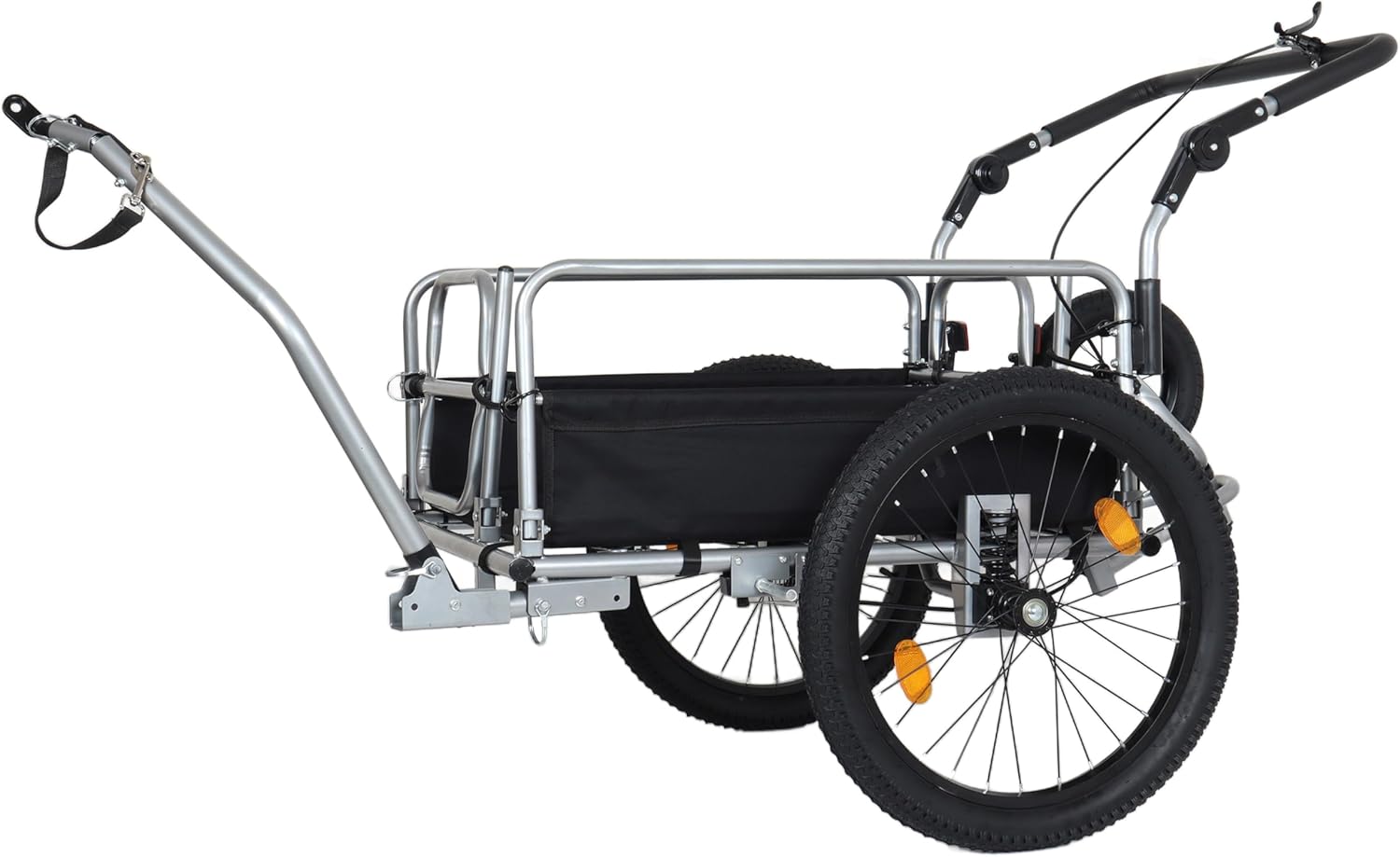 Transform your transportation and storage needs with our versatile 3-in-1 Heavy-Duty Bike Cargo Trailer, designed to seamlessly convert between a bike trailer, stroller, and pull cart for unmatched functionality. Built with a durable stainless steel frame, this rugged utility cart supports up to 110 lbs, making it ideal for industrial, commercial, or heavy-duty outdoor tasks. The large 20-inch all-terrain wheels with suspension ensure smooth gliding over rough surfaces, while the tiered shelving system maximizes space for organized tool and supply storage. Reflective elements boost visibility for nighttime operations, and its easy-conversion design adapts to your workflow—whether hauling equipment, transporting janitorial supplies, or navigating tight spaces as a stroller. Perfect for contractors, maintenance crews, or outdoor enthusiasts seeking reliability and versatility.