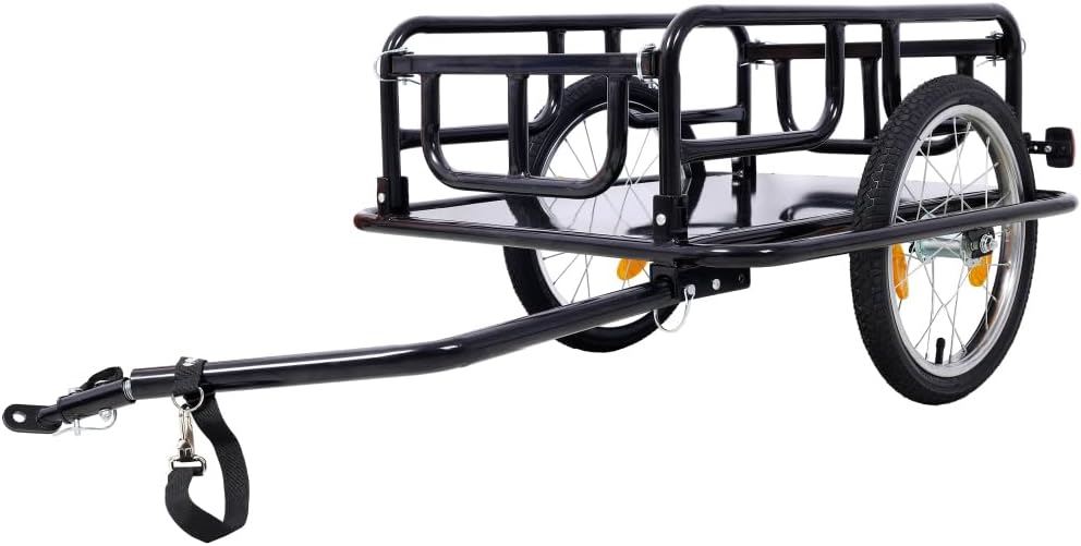 Transform your biking experience with our Foldable Bike Cargo Trailer. Designed for versatility and convenience, this cargo trailer features a universal bike hitch that easily attaches to most bicycles, allowing you to transport groceries, camping gear, or any essentials with ease. Equipped with 16" wheels and reflectors, this sturdy trailer ensures smooth rides and enhanced visibility on the road. Its foldable design allows for easy storage and portability, making it the perfect companion for any cycling adventure! Key Features:Universal Bike Hitch: The easy-to-install universal bike hitch ensures compatibility with most bicycles, allowing for quick setup and seamless towing.Large Loading Capacity: With ample storage space, this bike cargo trailer can handle a significant load, making it ideal for grocery runs, picnics, camping trips, or transporting work equipment.Durable Construction: Built with high-quality materials, this trailer is designed for durability and stability, ensuring it can withstand heavy loads and rough terrains.16" Wheels for Smooth Rolling: The sturdy 16" wheels provide excellent stability and smooth maneuverability, making it easy to navigate through various terrains.Safety Reflectors: Equipped with safety reflectors, this trailer enhances visibility during low-light conditions, ensuring safe rides whether day or night.Foldable Design: The foldable feature allows for easy storage and transport when not in use, saving space in your garage or car trunk.