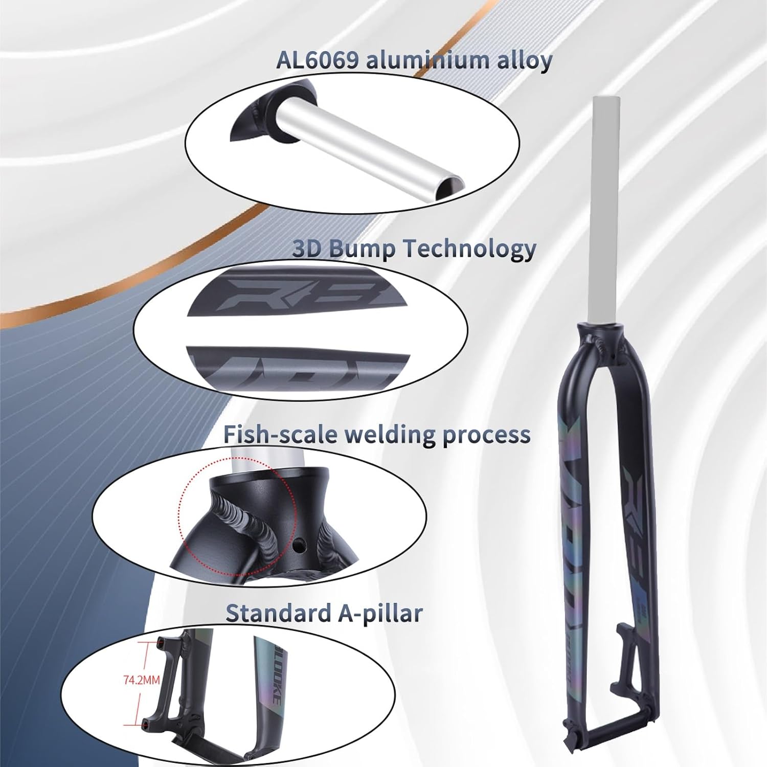 26/27.5/29” Mountain Bike Rigid Forks 1-1/8” Straight Mountain Bike Forks Disc Brake Ultralight Aluminium Bicycle ForksSpecification:26/27.5/29 inch universalMaterial:AL6069 aluminium alloyOpening:100mmWeight:781gColour:Matte black/colourfulVertical tube diameter:28.6mmRiser length:225mmBrake Type:A-pillar direct mountApplication:Mountain BikePitch:74.2mmFeatures:High temperature fish scale welding, - body moulding technology, standard A-pillar, 3D concave-convex technology woodPackage: 1*Mountain Bike Rigid ForkTips:1.Please carefully confirm the parameters of your bike before ordering, thank you.2. Due to manual measurement and shooting, the goods will have colour difference and error, please understand.3. If you have any questions, please feel free to contact us, we will reply you promptly.