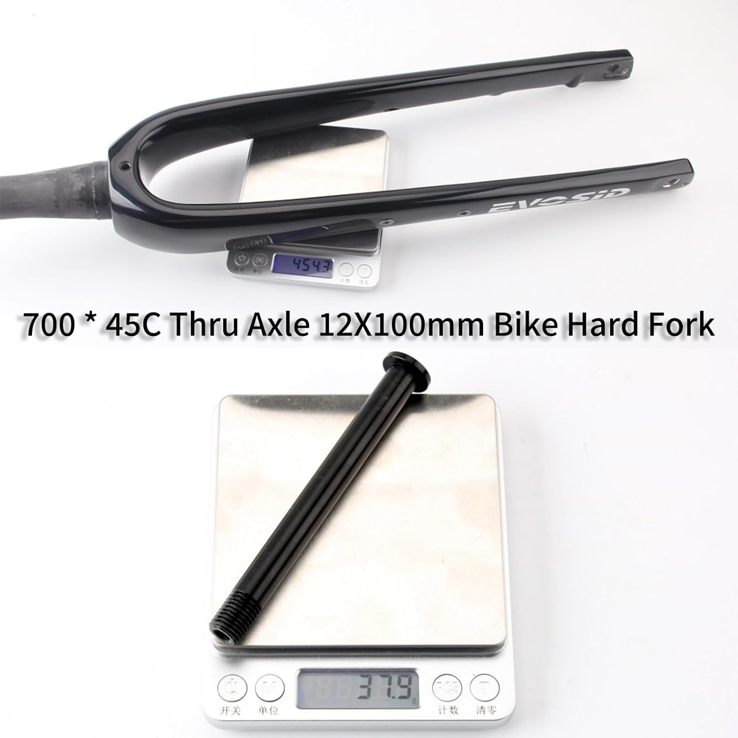 Gravel Fork Full Carbon Fiber Road Bike Fork 28.6mm Disc Brake Bike Fork 700 * 45C Thru Axle 12X100mm QR 9X100mm Bike Hard Front Fork Name:Gravel Fork Colour:BlackModel:Quick Release 100*9mm / Barrel Shaft 100*12mmMaterial: carbon fibreSize:700COffset:50mmWeight: 454gMaximum tyre: 700*45CThrough shaft TP:M12*P1.5Brake: Disc brakeSteering OD: 28.6MMCrown shaft inner diameter: 39.8MMSuitable for rotor: 140MM/160MMPackage: 1*Full carbon fibre road bike forkNote: If you have any questions, please feel free to contact us, we will reply to you within 24 hours!