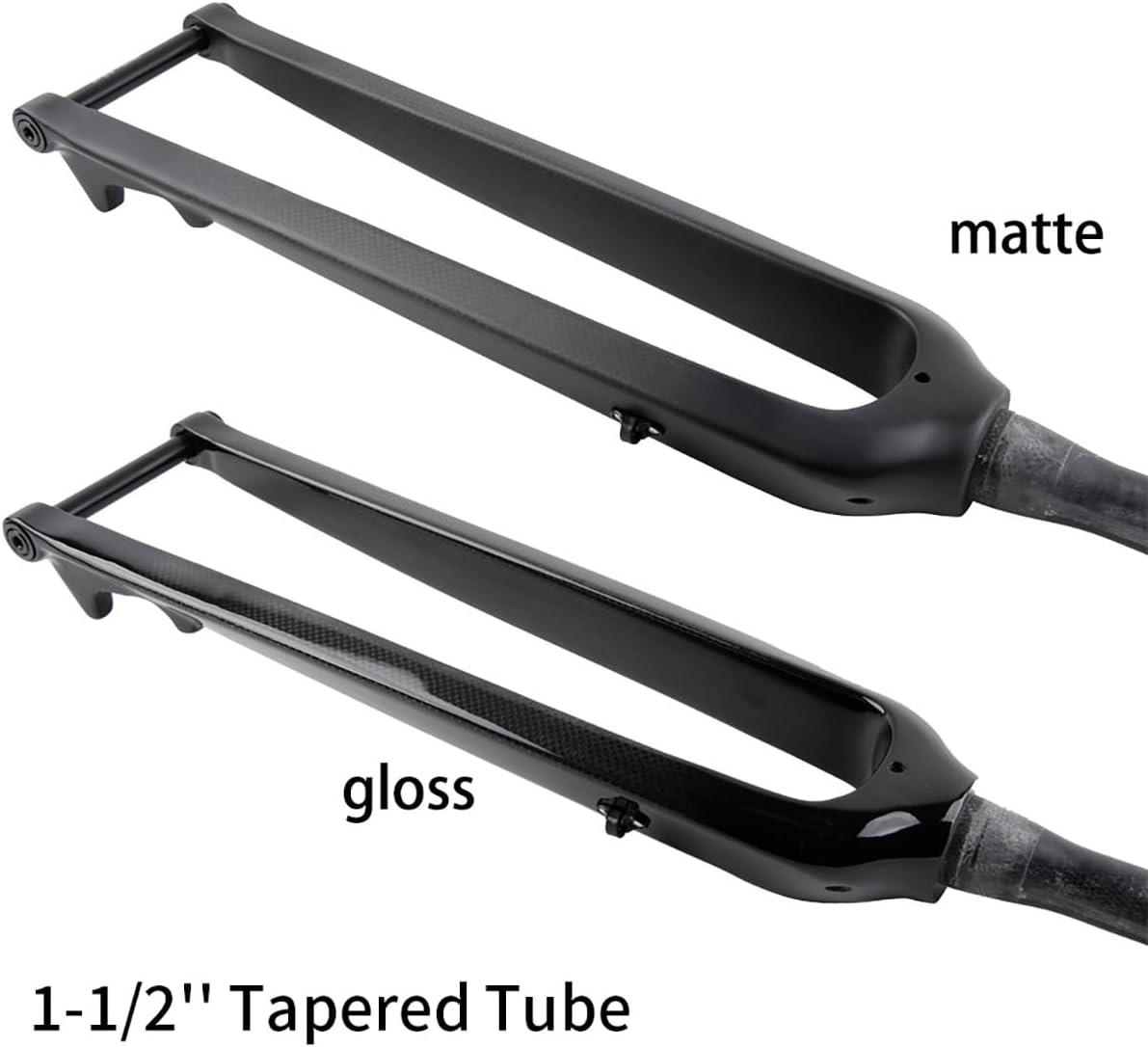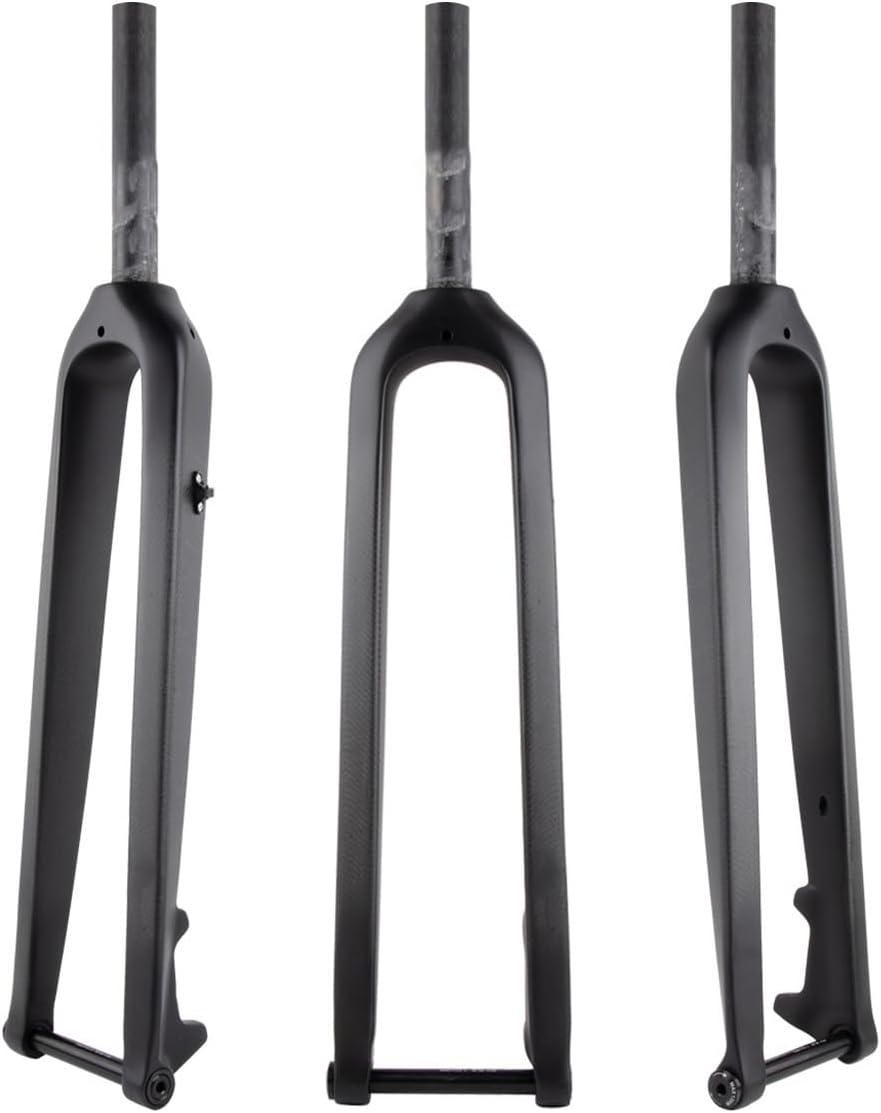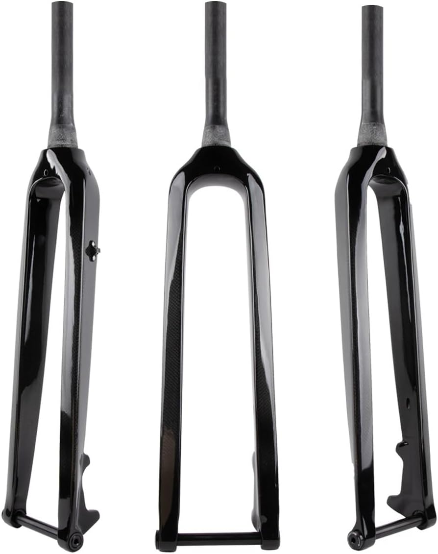 Carbon Fiber Mountain Bike Rigid Fork 26'' 27.5'' 29'' 1-1/8'' Straight/Tapered Tube Bikes Front Fork Disc Brake 15X100mm Thru Axle Bikes Hard Front Fork Internal alignmentMountain Bikes rigid fork parameters:Size: 26/27.5/29 inchesMaterial: carbon fiberSteering Tube Specifications: 28.6x30x300 mm(1-1/8"),28.6x39.8x300mm(1-1/2'')ThreadlessHead tube: 28,6x300mmThru axle: 15x100mmDisc brake column distance: 74mmInternal alignmentApplicable tire specifications: for 26/27.5/29erx2.35" tiresWeight: approx. 590±40gPackage:Rigid fork X1Please note:1. Please check the details in our list carefully according to the actual condition of your bike to make sure you buy the fit Bike Fork.2. Due to size specifications for manual measurement, so please allow for slight error, lighting in photography may cause color differences from real life. 3. If you have any questions, please contact us, we will solve it for you within 24 hours.