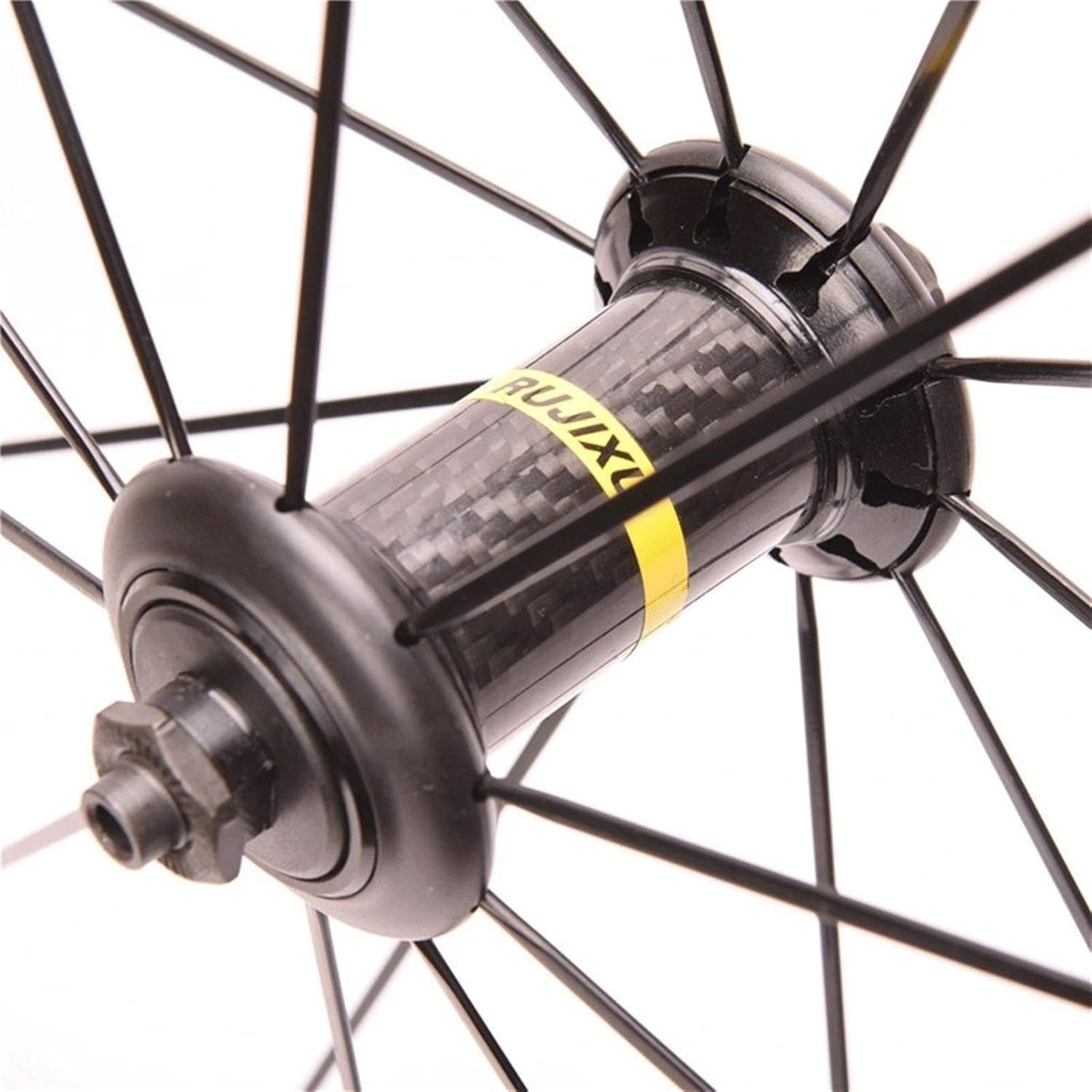 700C road bike wheelset, terrain wheels for training and competition.Weight:Front wheel: 970 gRear wheel: 1145 gSearch:Color: BlackHeight: 40 mmMaterial: 6106 double-layer aluminum alloyRays:Number of holes: F: 20, R: 24 (holes)Material: Stainless steelNuts: Brass, ABSShape: straight head, flat spokesCenter:Fixed Gear: 1.37 × 24 TPIFront and rear axle materials: steelFront and rear hubs: carbon fiber and aluminum alloyFront axle dimensions: 9x100mmQRM Rear axle dimensions: 9.5 X120 mmCompatibility:Tire sizes: 19c to 28cTire: Standard open tirePackaging:Axle x2 Tire bearing x2 Retaining ring x1