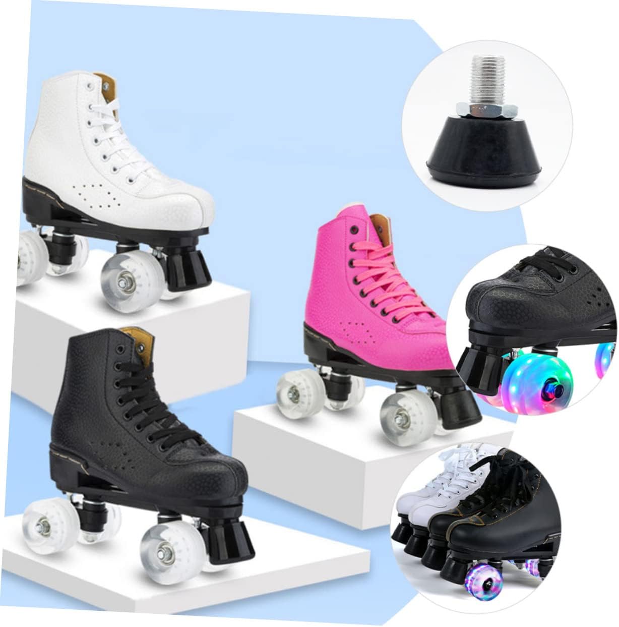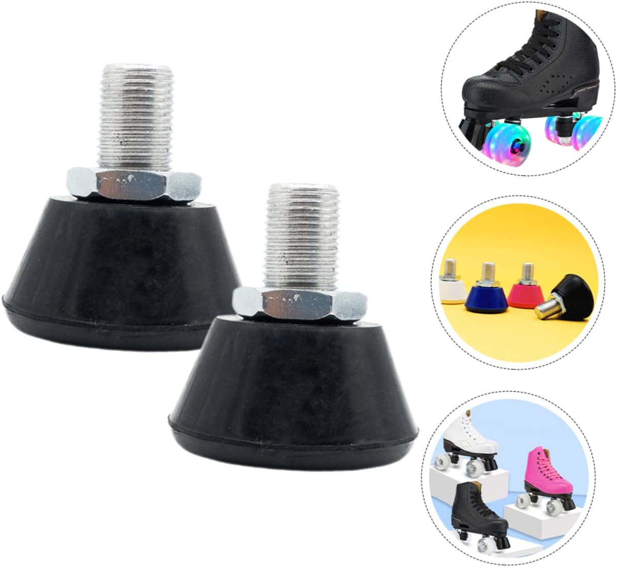 Package List 2 x Pair of Toe Stops Characteristics -Material:Rubber, Stainless Steel roller skate brakes - Color: Rosy toe stop plug - Size: 5.30X4.90X4.90cm/2.08X1.93X1 roller skates toe stops. -The stopper is ideal for rounded outdoor surfaces such as streets and sidewalks. They have a large braking area to slow you down and make sure you can coast safely rubber blocks. -The stopper combines rubber with stainless steel. You can easily install them without any tools free skates. -Ergonomic design, skate toe plugs provide stability and predictable braking force. It's more abrasive and won't drag or slide unintentionally skate stoppers. -These Skate Toe Plugs are made of high class rubber, stainless steel. You can use them on most standard four-wheel skates. The brake height can be adjusted freely according to the sliding needs brakes for roller skates. -Suitable for indoor and outdoor use on most floors, such as wood floors for skating, asphalt floors and concrete floors rubber.Goods Informationroller skates toe guard This brake stopper is easy to use and convenient to install on most kinds of roller skates.rubber roller Roller Skate Toe Stopper is made of , to use and durable for long-lasting time of use.professional toe stops This is a roller skates exercise Brake Stopper.roller skates toe stops It could be adjusted to the height you need for comfortable skating.toe guard It can be a great tool for those roller skates enthusiasts, and they will like it