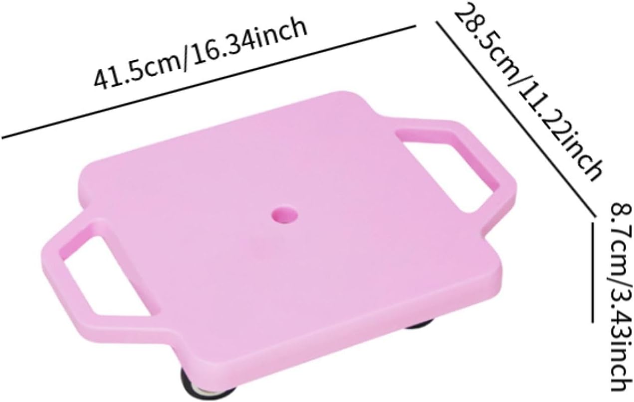 Description: - 【 Sensory Development】: This four wheel square scooter is designed for sensory integration training, helping to improve children's balance, vestibular function, and coordination skills - 【Quiet Wheels】: Equipped with double bearing universal wheels and silent, wear resistant PU infused wheels, this Standard Scooter Board ensures a smooth and silent slide for your child - 【Promotes Physical Growth】: Indoor Scooter Board is ideal for children aged 3 and above, it aids in developing proprioception and enhancing the coordination of limbs, contributing to overall physical development - 【Versatile Play Options】: With multiple ways to play, this Floor Scooter Board offers fun while supporting the development of motor planning abilities in children - 【Safe and Sturdy Design】: Made from quality PP with dimensions of 41.5x28.5x8.7 cm, this Sit Down Scooter is built to withstand active play while ensuring security for your kidsSize Chart:41.5cmx28.5cmx8.7cm/16.34inchx11.22inchx3.43inchPackage Includes:1x Indoor Scooter Board with HandlesNote:1.This is not infant toy, please take away from children to avoid eating.2.Please allow slightly errors due to manual measurement and different monitors.