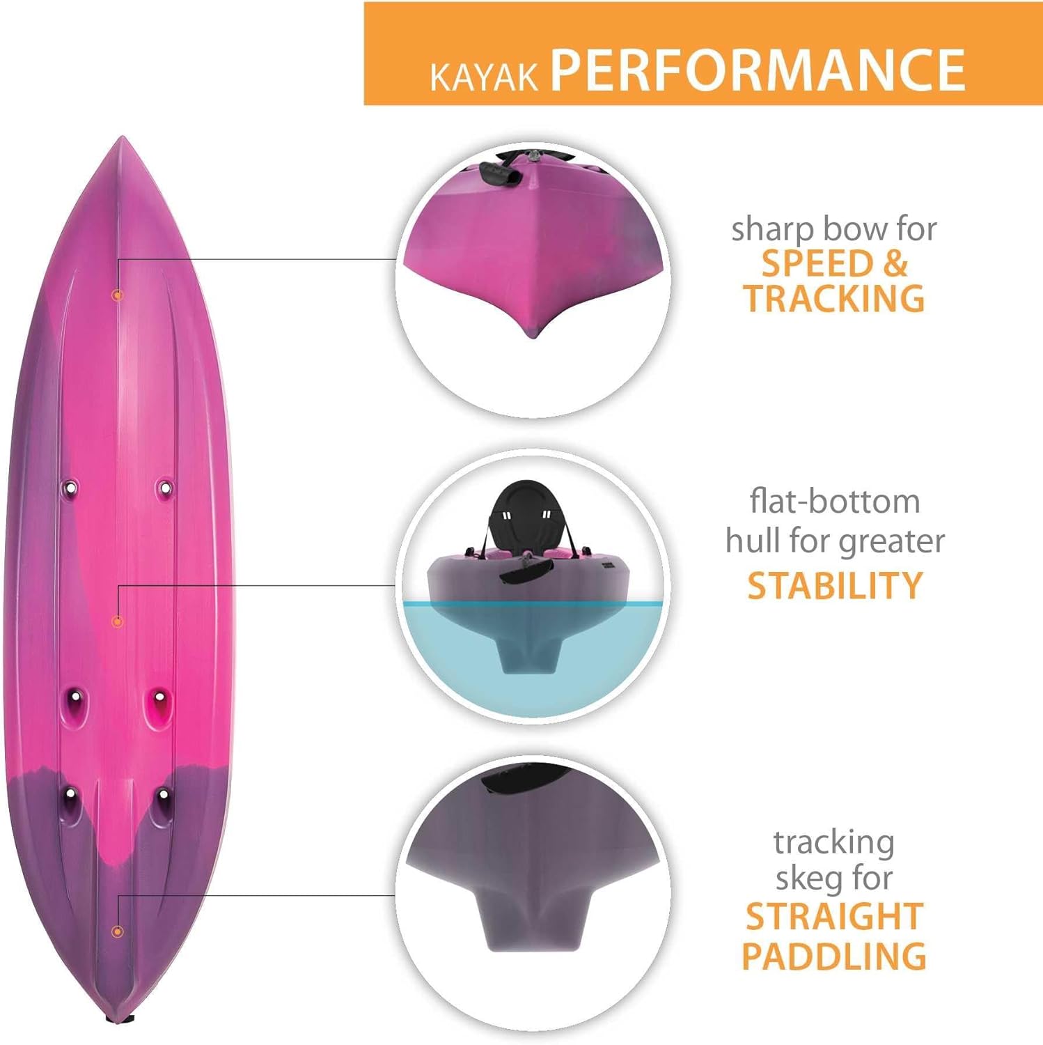 The Lifetime Tamarack is a sit-on-top kayak built for durability and designed for stability and comfort. The flat bottom and deep tracking channels optimize the stability and movement of the kayak. The adjustable backrest and multiple footrest positions optimize your comfort on your long paddling adventures. The kayak features a durable build that is impact resistant and UV-protected. There are three storage options for your gear in the water: front bungees, a rear tankwell, and a storage hatch in the center. Front and rear t-handles and side luggage handles let you easily carry your kayak to and from the water. The Lifetime Tamarack Kayak is truly equipped to give you the best experience out on the water.