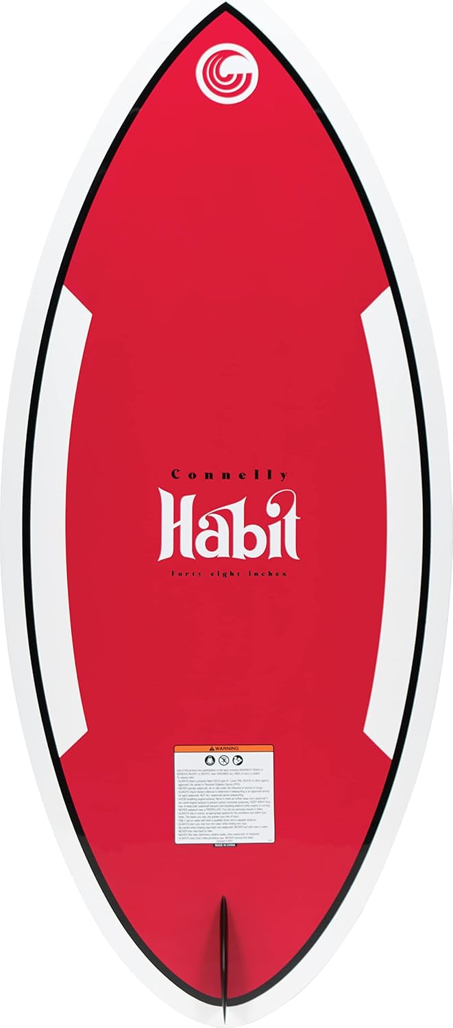 Your new Habit will have you spinning with ease. The Connelly Habit wakesurf board is ideal for riders seeking a swift and agile ride. Designed for those who love pushing their skim skills and getting creative, this board offers excellent stability and control with its zero bottom features and single center fin. The flat rocker line provides a stable base for riders to float back on a wave or boost forward with quick weight redistribution. The Habit's key feature is its high-quality construction, offering excellent durability and performance. With a high-density foam core for superior flotation and responsiveness, and top and bottom layers of high-quality epoxy resin for strength, this board balances performance and stability perfectly.