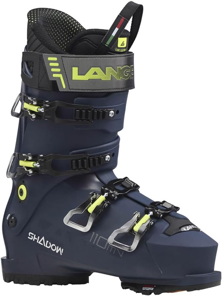 Shadow 110 MV GW — Controlled power, absolute comfort The Shadow 110 MV GW shoe was designed to reconcile performance and comfort, a promise that was delivered through cutting-edge technical innovations. Lange is introducing its first ever assisted performance boot designed for committed skiers who want to harness their potential without overfatigue. Thanks to Suspension Blade and Dual Pivot technologies, the Shadow optimizes energy transfer for maximum power with minimal effort. This design allows you to ski longer, with more fluidity, without compromising accuracy or responsiveness. The seamless Core Custom liner incorporates Auxetic technology: an innovative three-dimensional structure that reacts to heat during thermoforming to adapt perfectly to the shape of the foot. By hot expanding and cold retracting, it guarantees an ultra personalized fit, for a custom fit every ride. The Shadow is for those who live their passion for skiing with intensity, without compromise. Skiers inhabited by skiing, followed by their passion like a shadow. Everywhere. Always. A new HV last in 102 mm: the custom fit Always guided by the obsession with the perfect fit, the Lange brand enriches the Shadow range with a new 102mm HV (High Volume) last, ideal for wider feet. This new volume complements the existing offering: Low Volume - 97mm: Narrow Fit Medium Volume - 100mm: Standard Fit High Volume - 102mm: wide fit