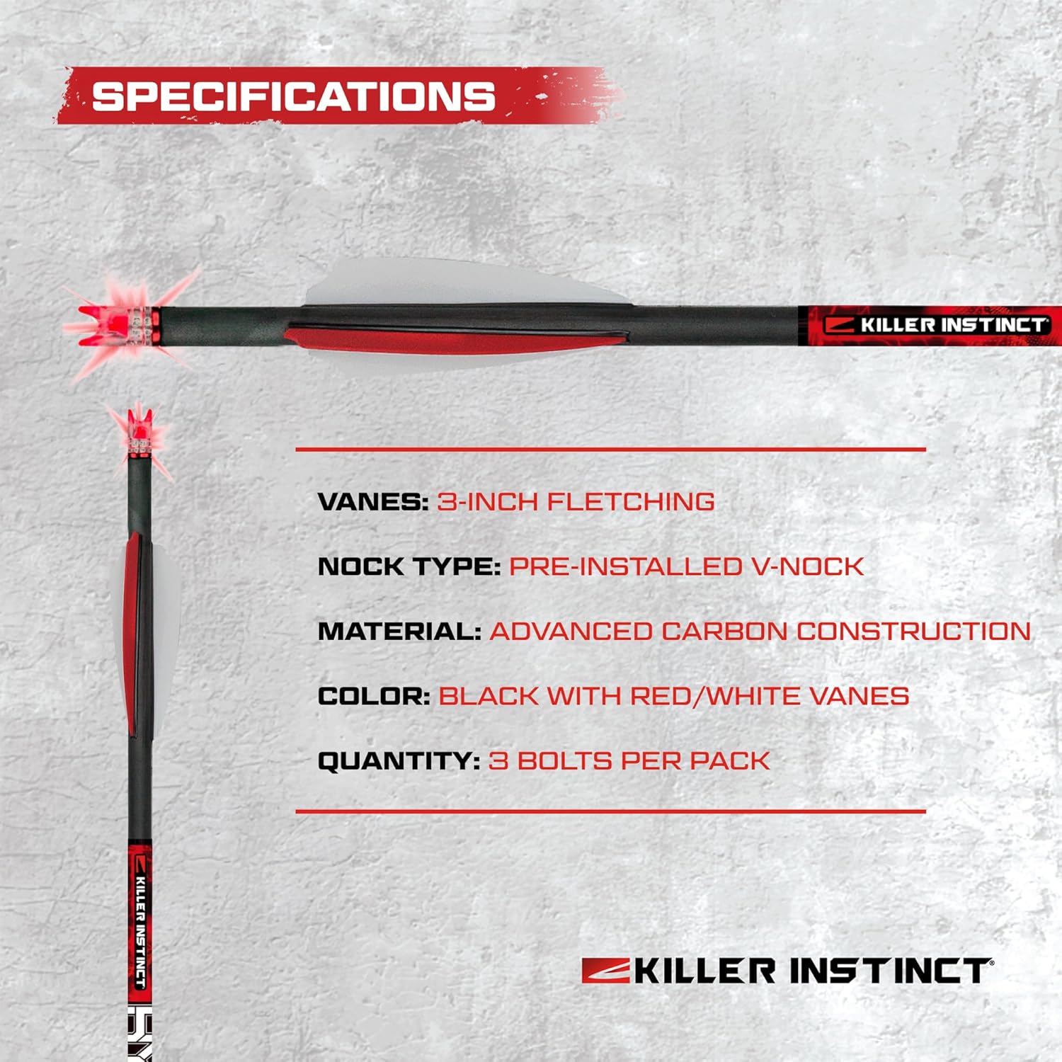 These Lighted HYPR-V 20" Crossbow Bolts feature LED illumination for easy tracking and recovery. Each bolt weighs 390 grains total with a 100-grain point. Built with .003" straightness tolerance and .300" inner diameter for meticulous performance. New V-Track nock system improves string contact and reduces center serving wear. Compatible with all current and past Killer Instinct crossbow models except 1120 Swat XP and Furious Pro 9.5. Grain weight tolerance +/- 1.0 for consistent results. Available in a 3-pack lighted version or a 6-pack standard. Comes standard with all 2025 Killer Instinct crossbow models. V-Track nock is also available separately.