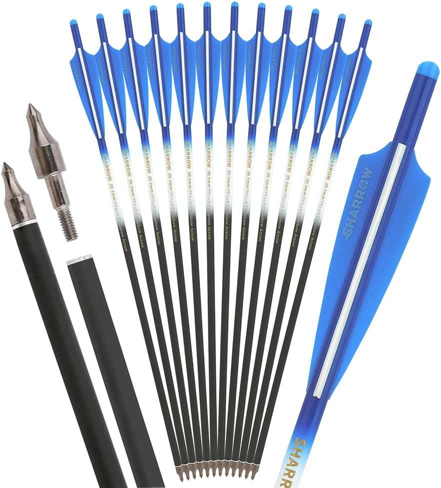 Item Name: 16/17/18/20/22 inch Carbon Crossbow Bolts Arrow Length: 16/17/18/20/22 inch for option Shaft Material: mix Carbon fiber Shaft ID: 7.6mm(.299") Shaft OD: 8.8mm(.346") Arrow Head: 125 grain removable screw in arrow tips + Aluminum Insert Arrow Vanes: 3 pieces 4 inch Plastic Vane Arrow Nock: Half Moon shape plastic insert nock Carbon Crossbow Bolts Total Weight: about 27g (20inch) (including the arrowhead), measurement by hand, please allow an error. Package includes: 6/12 x crossbow bolts Warm Note: 1. Consult with professionals and laws before use. Designed for adults target practice / hunting only, crossbow bolts shooting at a fast speed can harm with its super-sharp metal tips. 2. The arrow tips are sharp, when you play the arrow in backyard or outdoor, please make sure no any bystander near them. Never shoot at a person, it would be very dangerous. 3. If the plastic vane shape is distorted, you can put the vane into 80 to 90 Degrees Celsius hot water for a few minutes, it can be recover the original. 4. Do not shoot on the hard objects, such as metals, stones, cement, or plywood, or the metal tips would be harmed, although it is very solid. 5. Load one bolt at a time into the magazine making sure that the bolts are aligned and stacked properly with the flight track in the horizontal position.