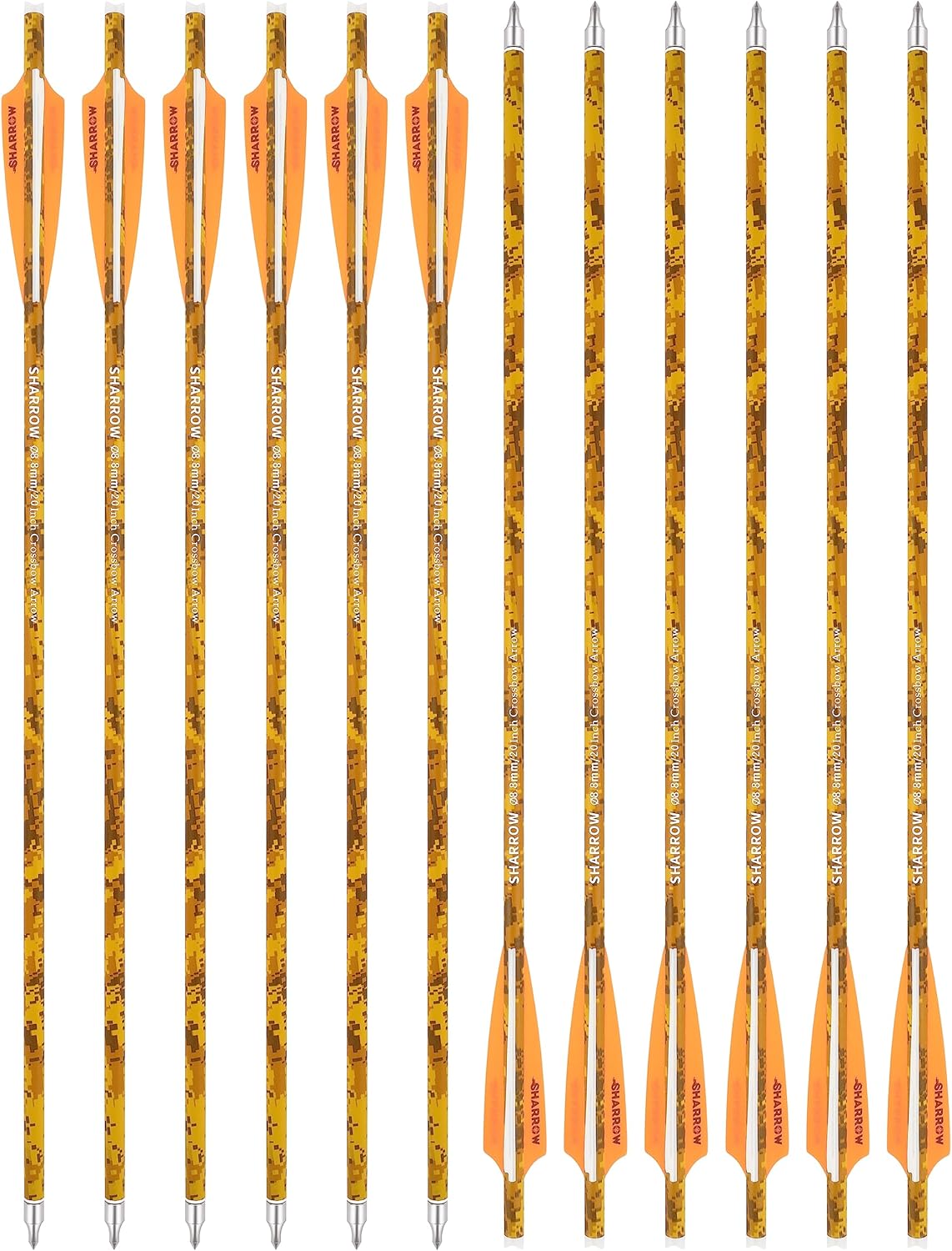 Item Name: 20 inch Carbon Crossbow Bolts Arrow Length: 20 inch Shaft Material: mix Carbon fiber Shaft ID: 7.6mm(.299") Shaft OD: 8.8mm(.346") Arrow Head: 125 grain removable screw in arrow tips + Aluminum Insert Arrow Vanes: 3 pieces 4 inch Plastic Vane Arrow Nock: Half Moon shape plastic insert nock Carbon Crossbow Bolts Total Weight: about 27g (20inch) (including the arrowhead), measurement by hand, please allow an error. Package includes: 12 x crossbow bolts Warm Note: 1. Consult with professionals and laws before use. Designed for adults target practice / hunting only, crossbow bolts shooting at a fast speed can harm with its super-sharp metal tips. 2. The arrow tips are sharp, when you play the arrow in backyard or outdoor, please make sure no any bystander near them. Never shoot at a person, it would be very dangerous. 3. If the plastic vane shape is distorted, you can put the vane into 80 to 90 Degrees Celsius hot water for a few minutes, it can be recover the original. 4. Do not shoot on the hard objects, such as metals, stones, cement, or plywood, or the metal tips would be harmed, although it is very solid. 5. Load one bolt at a time into the magazine making sure that the bolts are aligned and stacked properly with the flight track in the horizontal position.