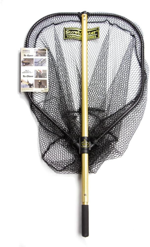11"X38" stowed size. Net bag is 24″ deep. Bag is not too shallow or too deep, smallies less likely to jump out, or get rolled in the netting. LONG length - 80" to reach your catch before they go ballistic at the boat. Lightweight, but capable of handling up to 25 pounds. Folds up nicely to store in a compartment. Now features our new Guardian "hooks-less" netting to prevent hooks from getting caught in the netting. The same quality consistent of a StowMaster. Fish sizes: tournament bass