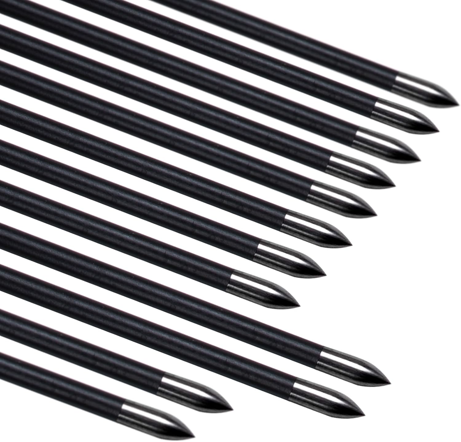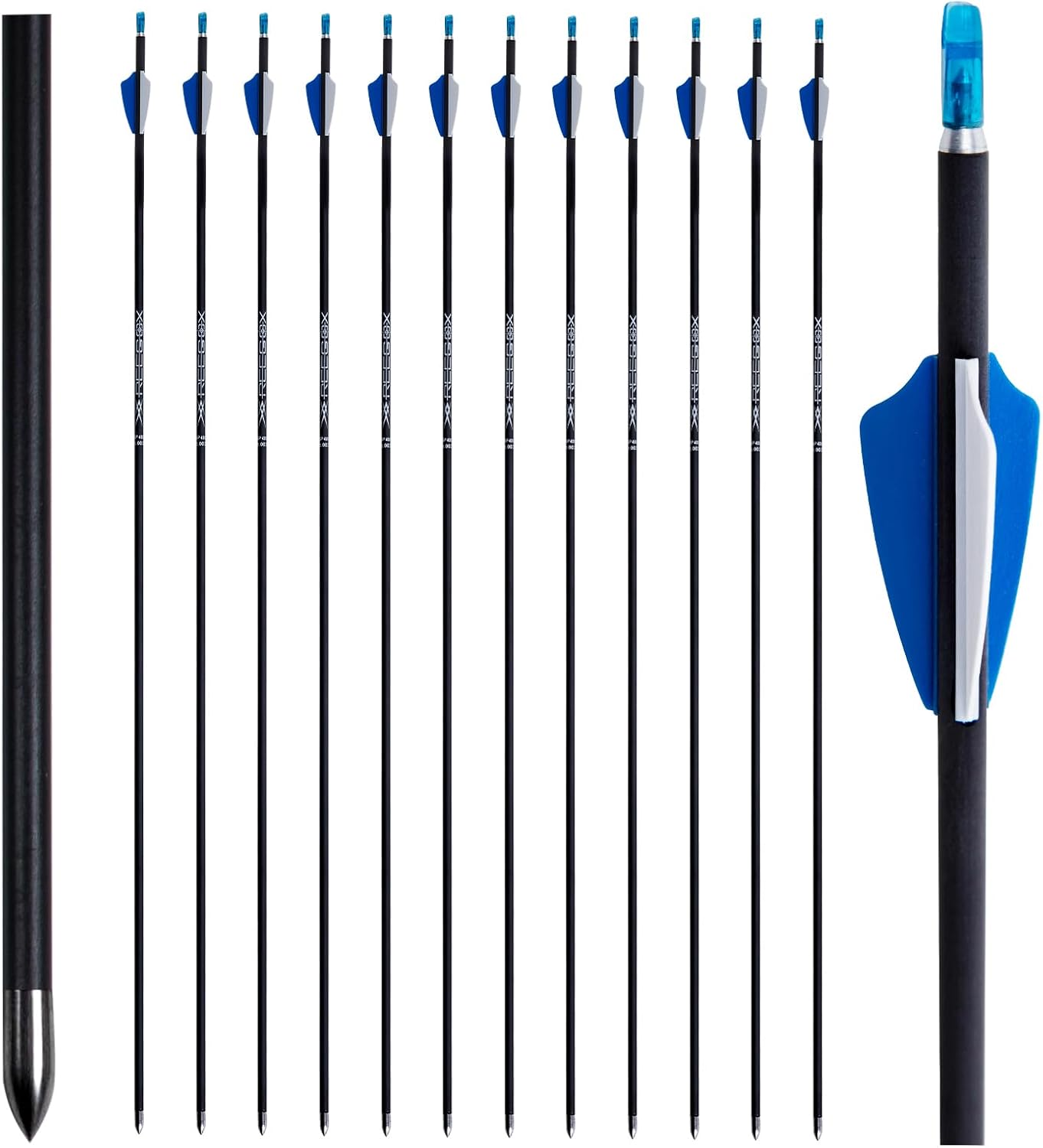 MYRRTE Archery provide the strong & reliable structure products for your archery career! Arrows Specification:Shaft material: 100% Carbon FilberStraightness:+/-.003Spine:800,900,1000,1100,1200,1300,1400,1500;Length:31“, ID: 4.2mm, VANES: 1.75” shield vanes;Nock/Point: glued-on;Fit for recurve bow & compound bowPackage:12Pcs;User Notice1.Warning:Check for damage before each shooting.Do not shot against concrete wall or any hard substance. This may damage the arrows.