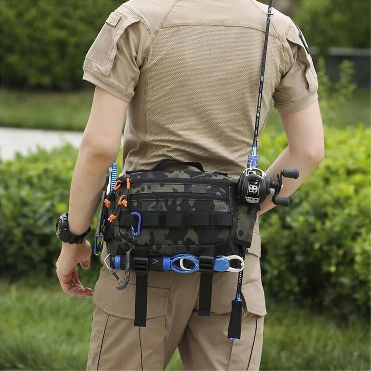 Material: Waterproof NylonColor: BK/KH/Green/Black Camo/Black CPSize: L: 30cm / H: 19cm / W: 11cmApplication: Suitable for outdoor activities such as cycling, camping, climbing, hiking, travel and fishing.Feature1 x Fishing Bag