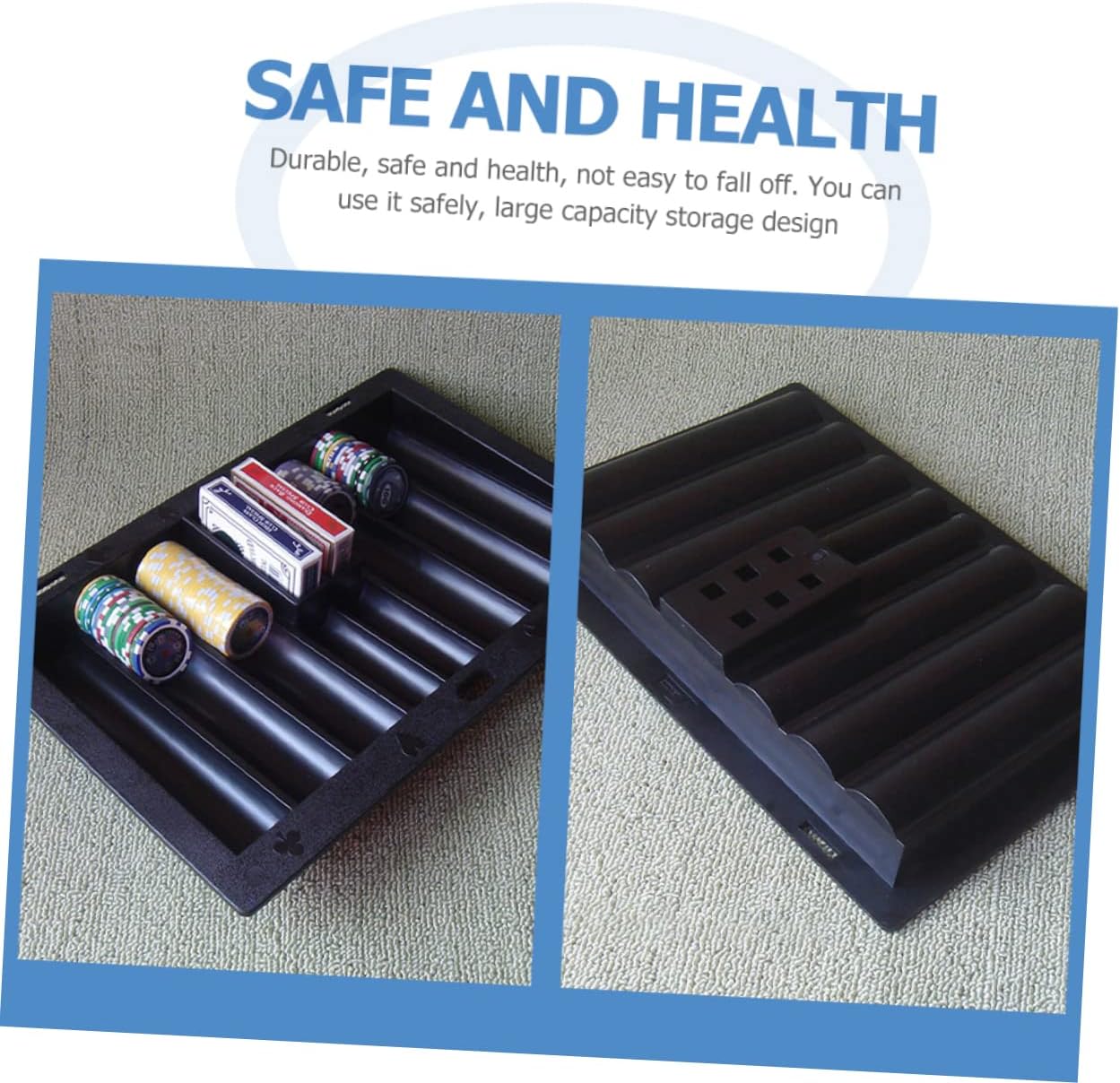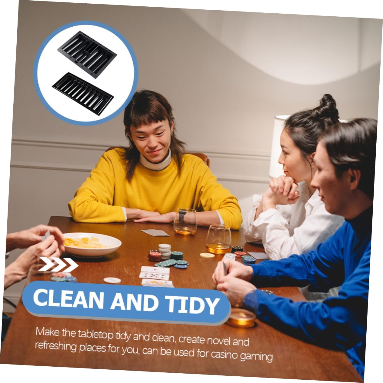 Package Include 1 x Plastic Poker Chip Tray Characteristics - Size: 37.50X25.00X7.00cm/14.74X9.82X2.75inch. Table Chip Storage Tray - Color: Black. Poker Chip Tray - Material:Plastic Table Chips Tray. - Note: with 2 card slots, 350-chip capacity Poker Chip Holder. - Can be used to store and keep poker chips and keep them organized and clean. Thick Table Chip Tray - This poker chip holder is thick and , you can easily organize your poker chips quickly without messing up Chip Tray for Table. - This poker chips tray for table is easy to storage, assistant for your entertainment Poker Chip Tray for Storage. - Rigorous process, selected plastic material manufacturing, simple and practical Thick Poker Chips Tray. - Simple to hold and store poker and chip, keep the table tidy, for gaming use Poker Chip Case.Goods DescriptionChip Tray for Table This item is thick poker chip tray.Table Chip Holder Tray Compact and lightweight design, it is really wonderful game chips holder organizer for you.Poker Chip Case It keeps your small items and accessories tidy and organized.Thick Table Chip Tray With this product, you can find game chips quickly