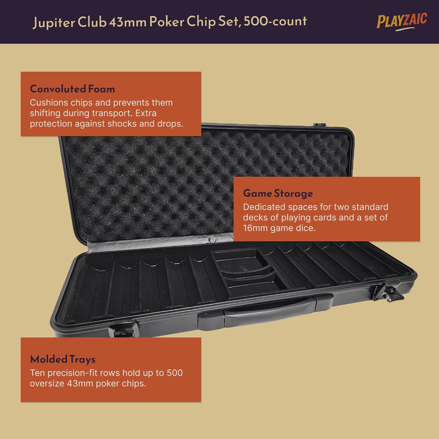 | Included Components | 500 x 43mm Jupiter Club Poker Chips, 1 x Poker Chip Case |