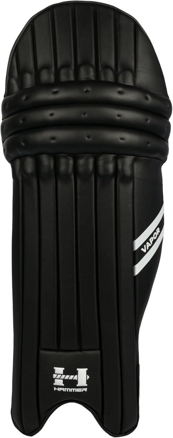 The Hammer Vapor Batting Pad combines traditional design elements with modern protective technology. The three-piece knee roll and tri-flex shin bolsters provide strategic impact absorption while maintaining mobility. HD EVA with cane backing delivers reliable protection against fast deliveries without compromising comfort during extended innings. Hammer Vapor Batting Pads offer premium protection, comfort, and style for a dominant performance on the cricket field.Key Features: Branding: Fully embossed logos on the front and back, including the 'H' logo, model name, and Hammer embossing on the 'T' part. Material: Crafted from premium quality plain PU in the front and back for durability and protection. Straps: Three straps for a secure fit with hook and loop system and embossed branding on the center strap. Extra padding on backside straps absorbs sweat. Front Look: HD EVA in the front with cane backing provides excellent protection and flexibility.Knee: Features a three-piece knee roll filled with cotton and HD EVA protection for shape retention and knee protection.Side Wing: Standard-size side protection with yellow branding and model name embossed. Made of HD EVA that allows maximum protection. Back Hat: Soft foam for protection with Hammer logo embossed. Back: Features HD foam with soft padding under the mesh for extra protection and comfort. The below portion on the back is filled with cotton and mesh. Tri-Flex Shin Bolsters: Equipped with PU and mesh for comprehensive protection and comfort.