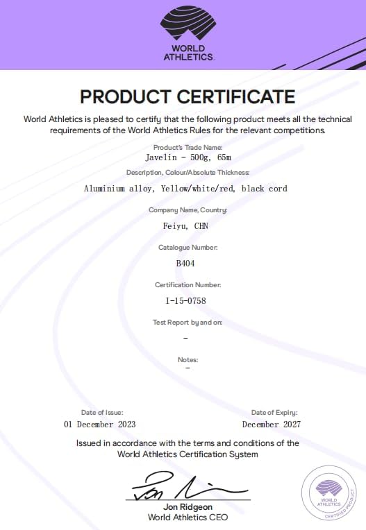 | Model Name | Mountainsports Track and field Javelin 500g 65M for competition and training With WA certification 500grams Javelins |