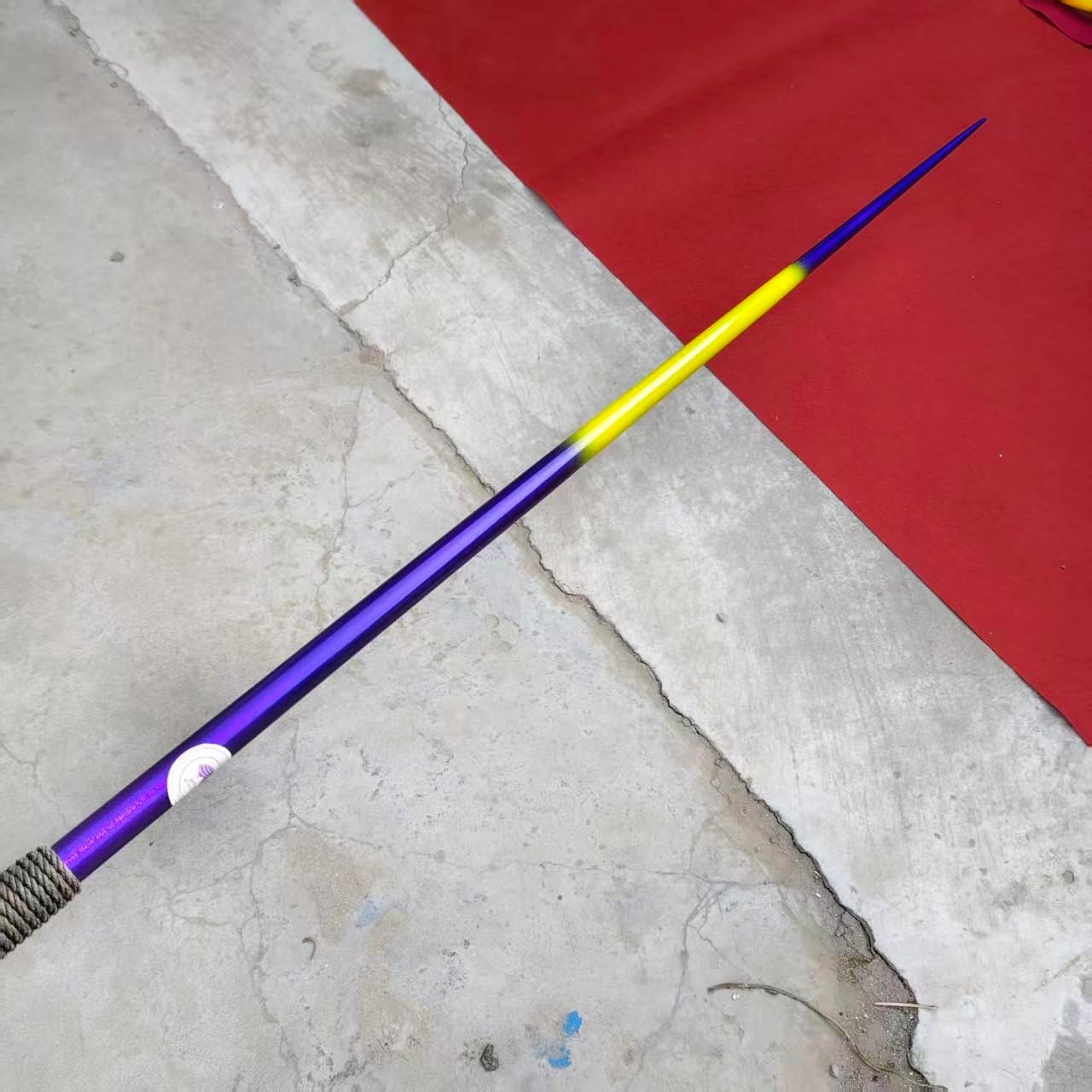 High quality 600g javelins rated 70Meters.The IAAF certified javelins are meant for girls&womens competition and training. Shiny Purple and Yellow Color.
