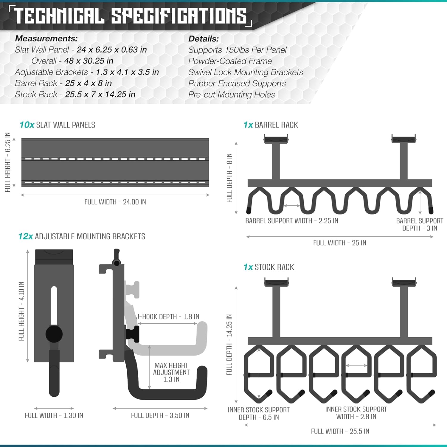 | Included Components | Wall Rack System |