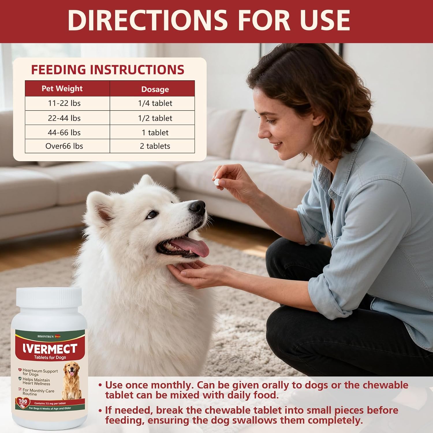 100 Chewable Tablets for Canine Heart & Internal Wellness Support, High Purity Formula for Long-Term Monthly Routine, Supports Immune Health for Adult & Senior Dogs