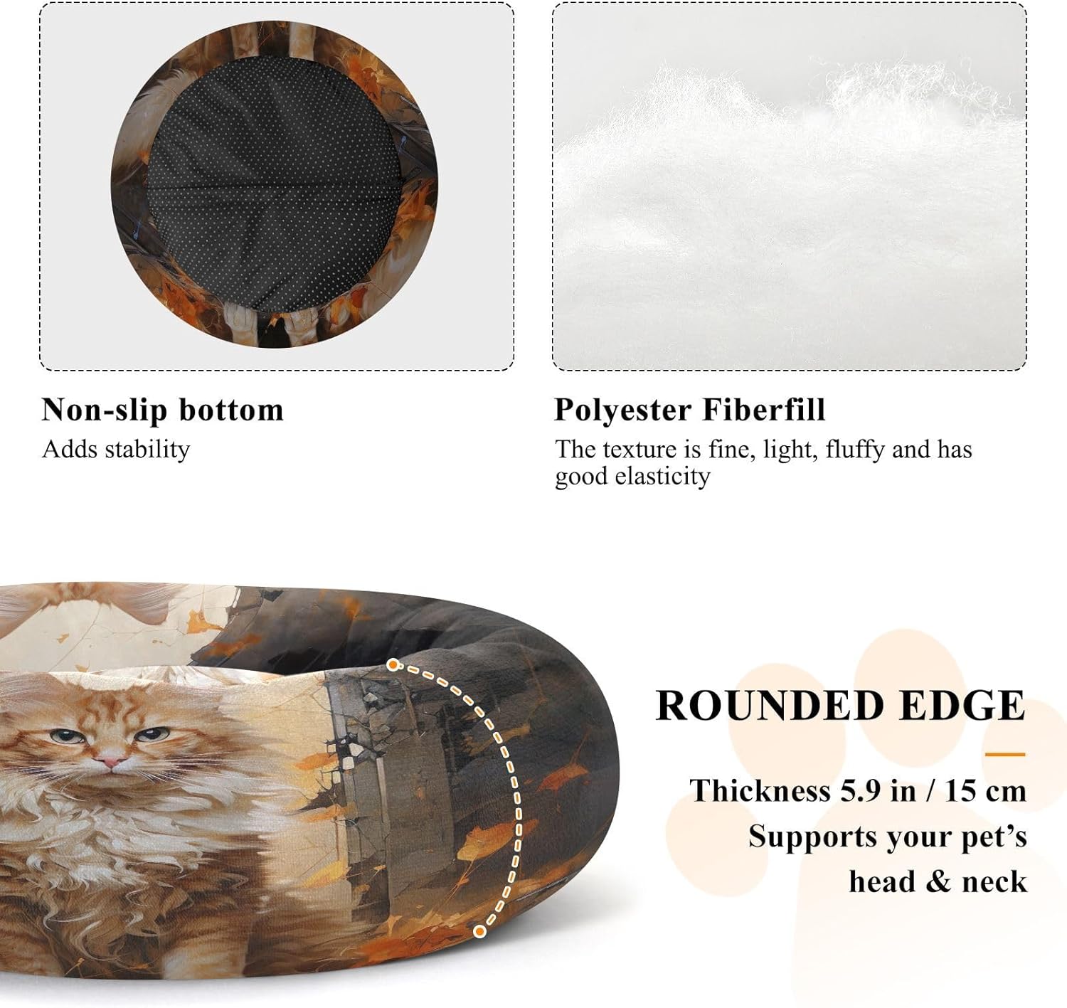 Product DescriptionMaterial Composition: Cotton Filling + Non-slip BaseSizes: XS/S/MSuitable For: Puppies, Small Dogs, Medium DogsFeatures- Soft plush fabric with a smooth, delicate texture provides pets with warm, comfortable tactile sensations- Round shape caters to pets' natural tendency to curl up, offering a sense of security- Slightly raised edges form a soft cushion for pets to lean against, preventing rolling off during sleep- Removable design allows for easy washing by pet owners