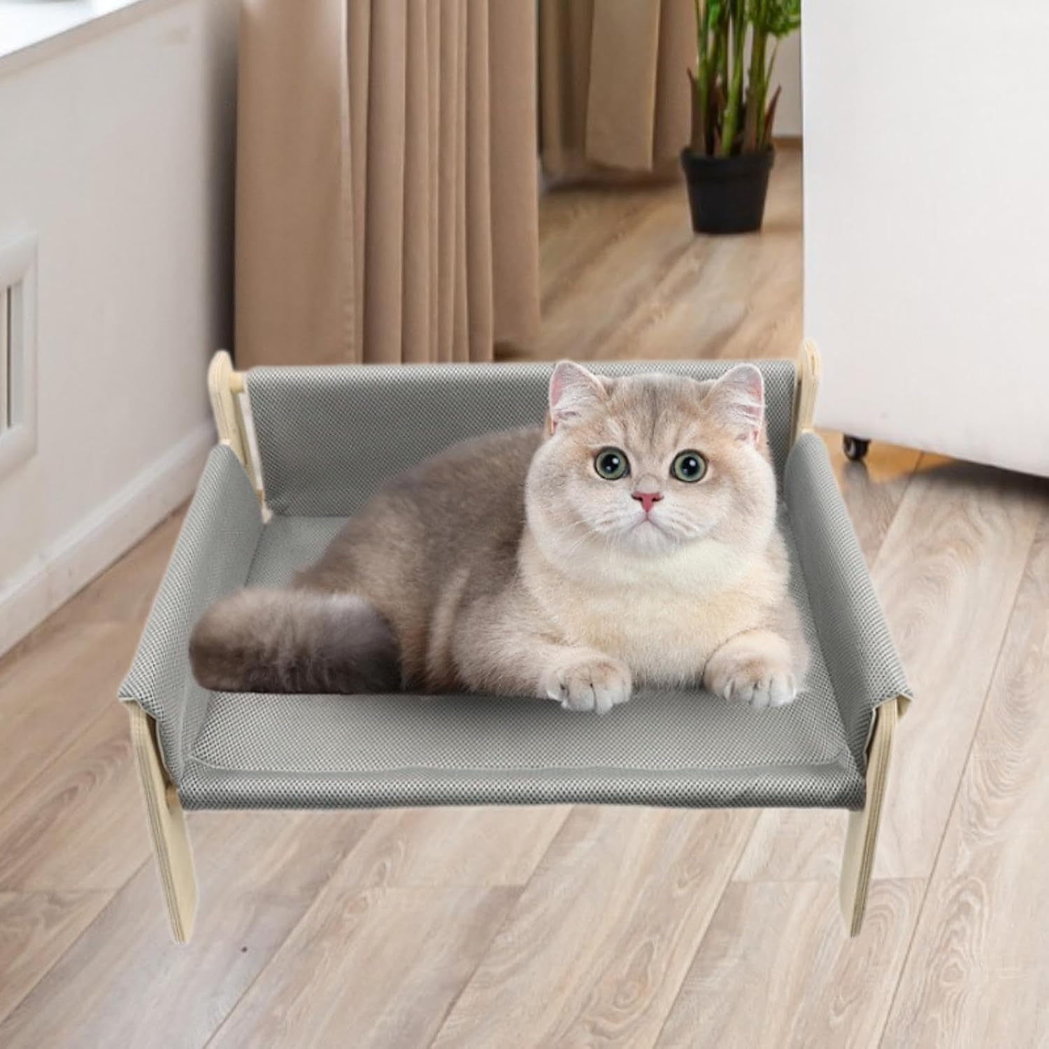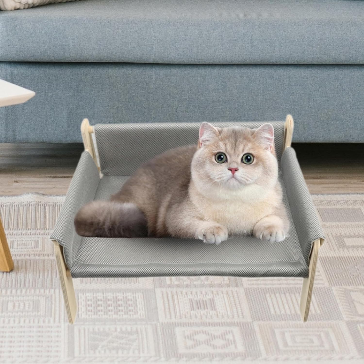 Description: - 【Wooden Pet Sofa】: Wooden pet sofa is suitable for your cat to lounge and relax on during the summer months. - 【Load Bearing】: With its load bearing capacity, this pet bed can comfortably accommodate pets up to 10kg. Your pet can lie flat without any worries. - 【Easy Installation】: The Pet Chair installation process is simple and convenient. First, assemble the wooden sticks in order, then place them as shown in the picture. Finally, wrap the frame with the sofa cover and stick it with . - 【Material and Size】: Pet Bed is made from wood material for durability and longevity. The product dimensions are 53cmx44cmx27.5cm/20.87inchx17.32inchx10.83inch, providing ample space for your pet to rest and play. - 【 Gift】: cat bed is suitable for indoor cats, kitty, puppy, , bunny, and small animal.Specification: - Material: WoodSize Chart:Size:53cmx44cmx27.5cm/20.87inchx17.32inchx10.83inchPackage Includes:1 Cat Sofa Bed