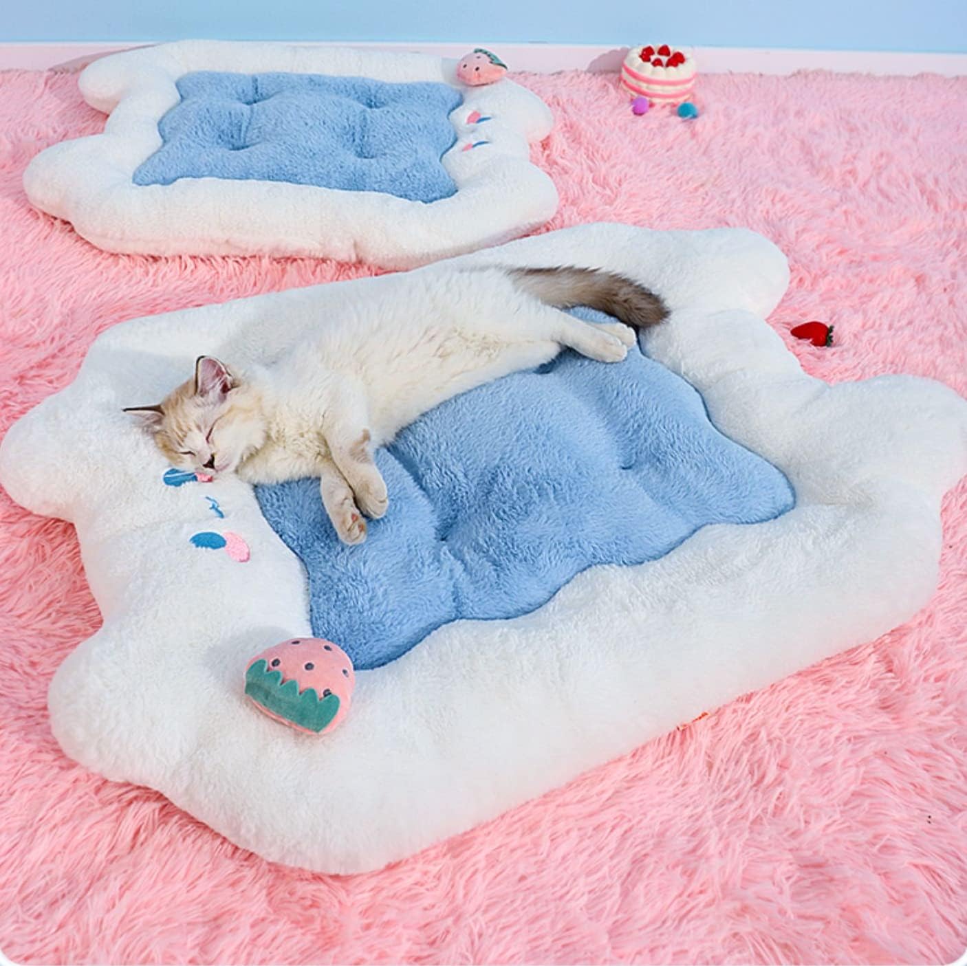 Specification: Material:plush,PP cotton. Washing method: hand wash/machine wash Project type:Pet bed,Pet sofa Type: for cats, for small dogs Measurement: Size S: length 25.6 inches × width 17.7 inches,(65x45cm), suitable for pets under 0-8.8 pounds.Weight:800g. Size M: length 31.5 inches × width 22 inches,(80x56cm), suitable for pets under 0-22 pounds.Weight:1200g.