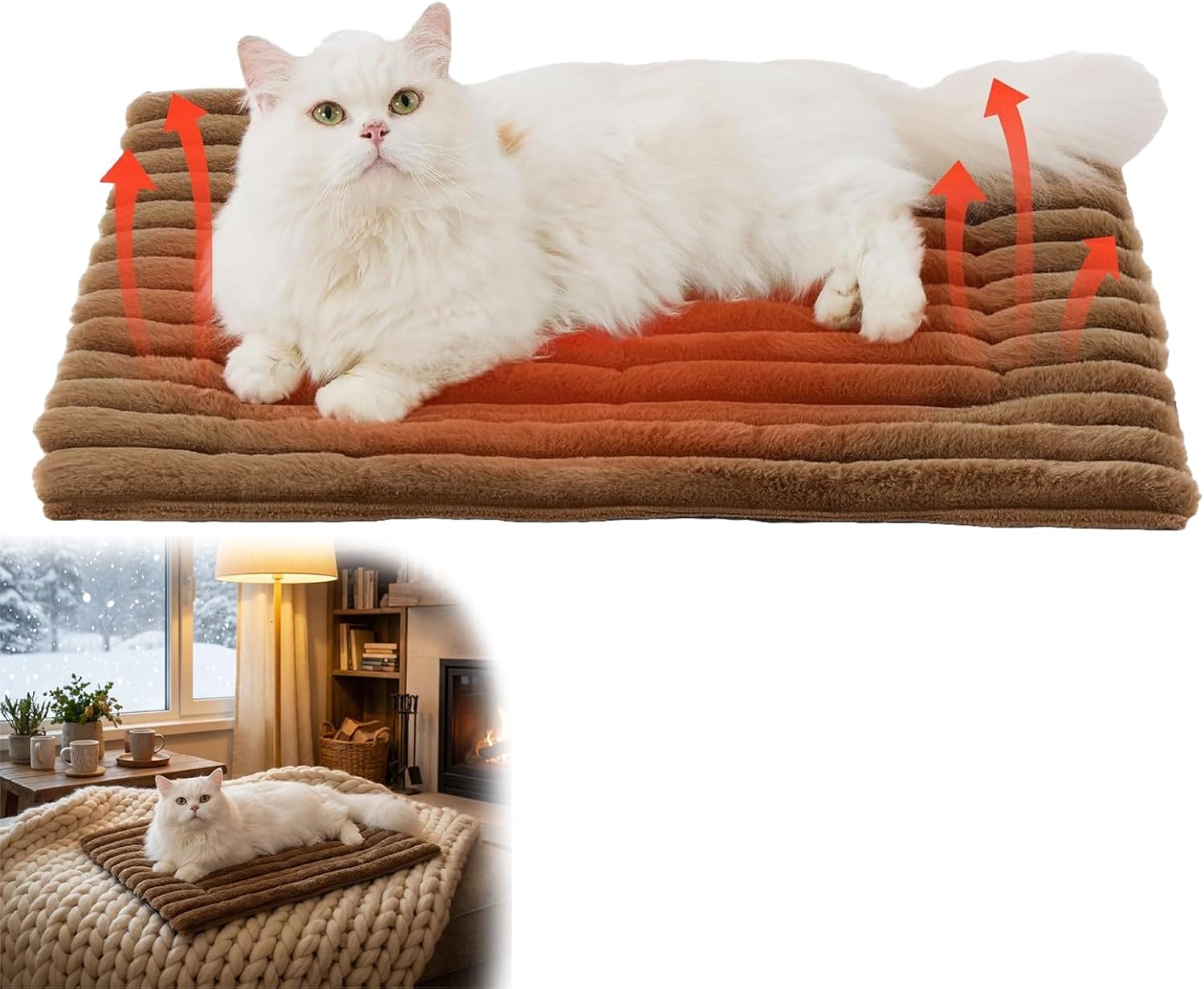 Cat Bed, Self Warming Pet Bed, Self-Warming Pet Mat, Machine Washable Reflects Body Heat Warm Thermal Pet Pad Crate Blanket For All PetsFeatures:1.Keeps Pets Warm And Cozy2. Soft Fleece Surface, Skin-Friendly And Comfortable3. Thick, Heat-Insulating, Non-Slip Bottom4. Removable And Washable Design, Durable And Wear-Resistant5. Suitable For Multiple Pets, Caring For Your Beloved PetSpecification:Name: Self Heating Cat MatColor: White, Brown, GraySize:S - 61x45cm/24x18inM - 76x51cm/30x20inL - 89x58cm/35x23inPackage Includes:1pcs * Self Warming Cat Bed【Tips】1.Due To Manual Measurement, Please Allow An Error Of 1-2cm.2.Due To The Different Display And Different Light, The Picture May Not Show The Actual Color Of The Item. Thanks For Your Understanding.