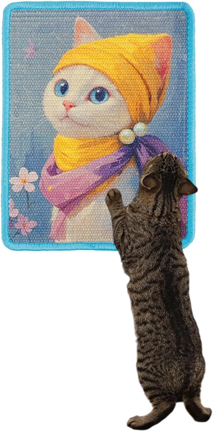 Elevate your home with our artistic cat wall scratcher. 16"x12" framed scratcher inspired by reimagined classic artworks, doubling as stylish wall décor. Easily attaches to walls, cabinet doors, or sofa sides to protect your furniture. Pre-assembled and ready to use with strong adhesive tape for quick installation. Made of durable tree-bark–inspired sisal for long-lasting, mess-free scratching. A functional and artistic gift, perfect for cat lovers and pet parents. Features: 1.16"x12" framed cat scratcher inspired by classic artworks for stylish wall décor 2.Easy to mount on walls, cabinet doors, or sofa sides to protect furniture 3.Pre-assembled with strong adhesive tape, ready to use out of the box 4.Durable sisal material mimics tree bark, long-lasting and mess-free 5.Functional and artistic gift choice for cat lovers and pet parents Specifications: 1.Color: Assorted artwork patterns with black premium frame 2.Material: Natural sisal fiber + wood frame 3.Size: 16" (H) × 12" (W) Warm tips: 1.Due to lighting and screen differences, the artwork colors on the cat wall scratcher may look slightly different from the pictures. 2.Some slight marks or compression on the sisal surface may occur during packing and shipping. Simply let your cat scratch naturally, and it will return to its normal texture. 3.For cleaning, just wipe the frame with a dry cloth or use a duster to keep it looking neat.