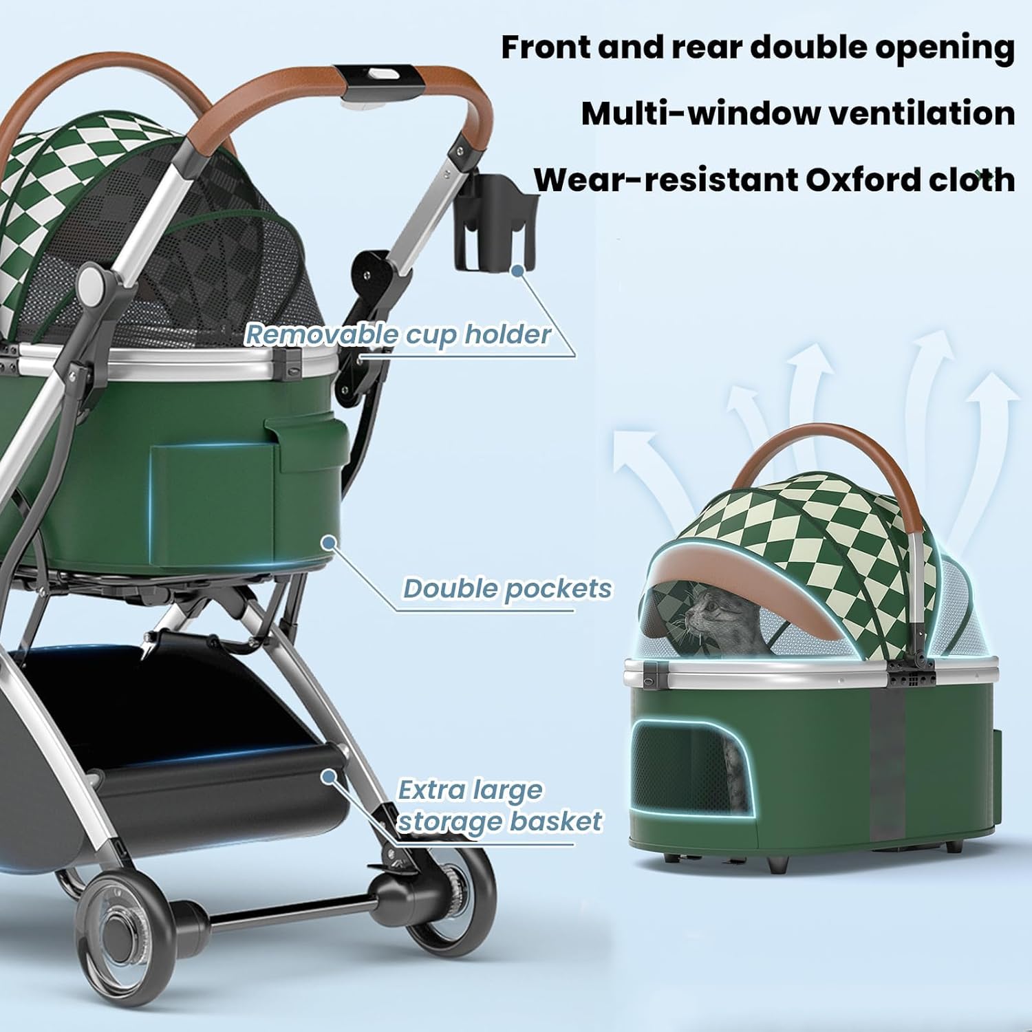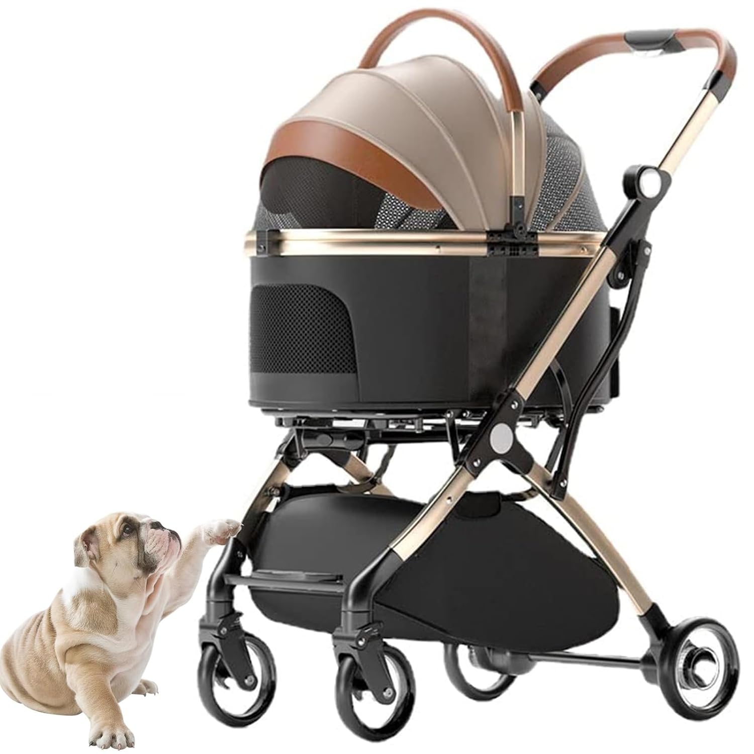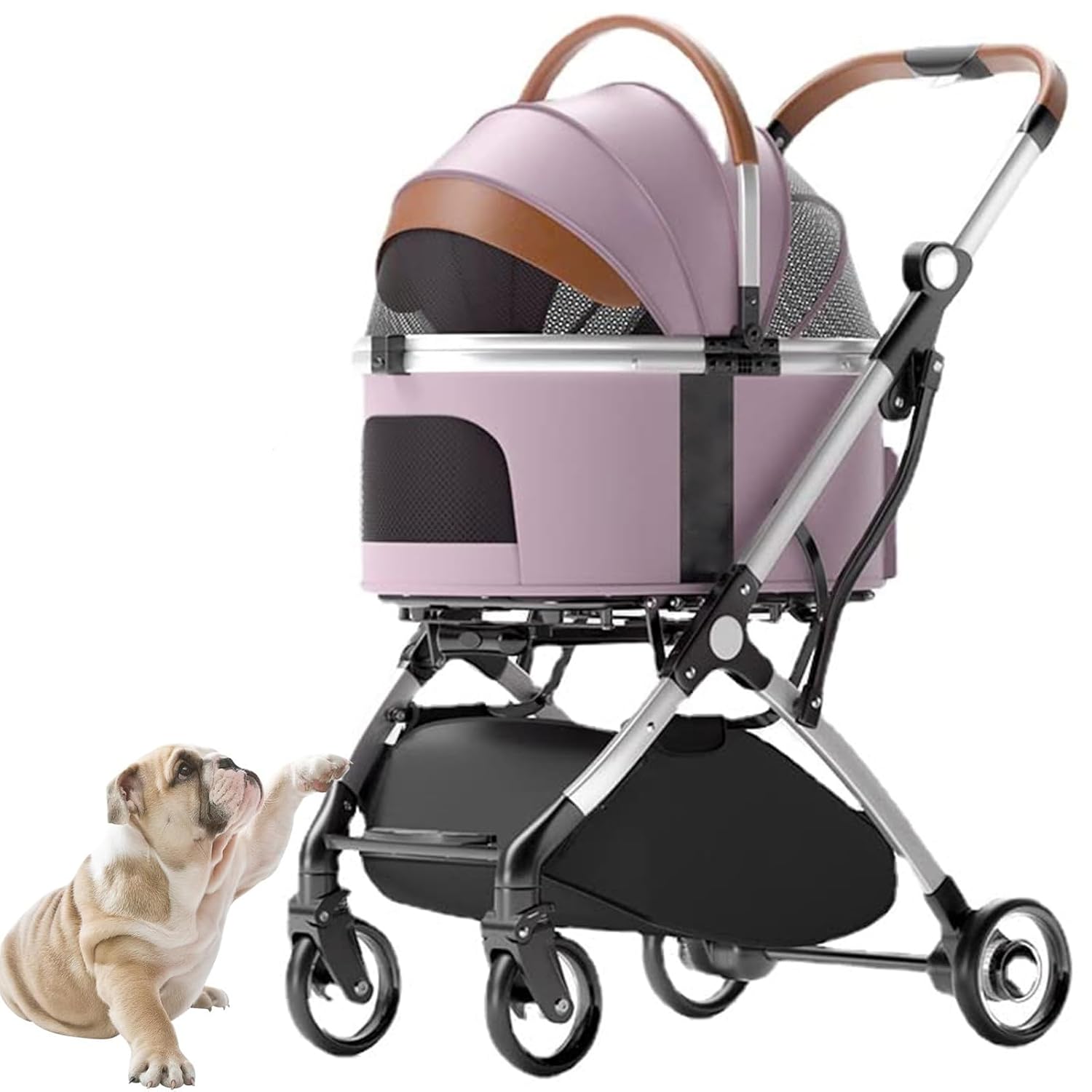 3 in 1 Foldable Pet Stroller, it could be Car Seat, take it anywhere Pet Basket and Pet Stroller!You can take your furry friend anywhere, stores, restaurants (outdoors), parks, graduation parties or even church!Specification:Item Name: Pet StrollerMaterial: Aluminum alloy, Oxford clothExpanded size: 77*47.5*100 CM/30*18.7*39.4inFolded size: 47.5*27*66 CM/18.7*10.6*26inCarrier size: 60*32*50 CM/23.6*12.6*19.7inLoad capacity: 33lbs/15kgProduct weight: 8.5KG/18.7LBSPlease measure the body length of your pet before purchasing.Package included:1 * Foldable Pet StrollerPlease Note:- Due to the light and screen difference, the item's color may be slightly different from the pictures.- There may be slightly deviation in dimensions due to manual measurement. Thank you for your understanding.