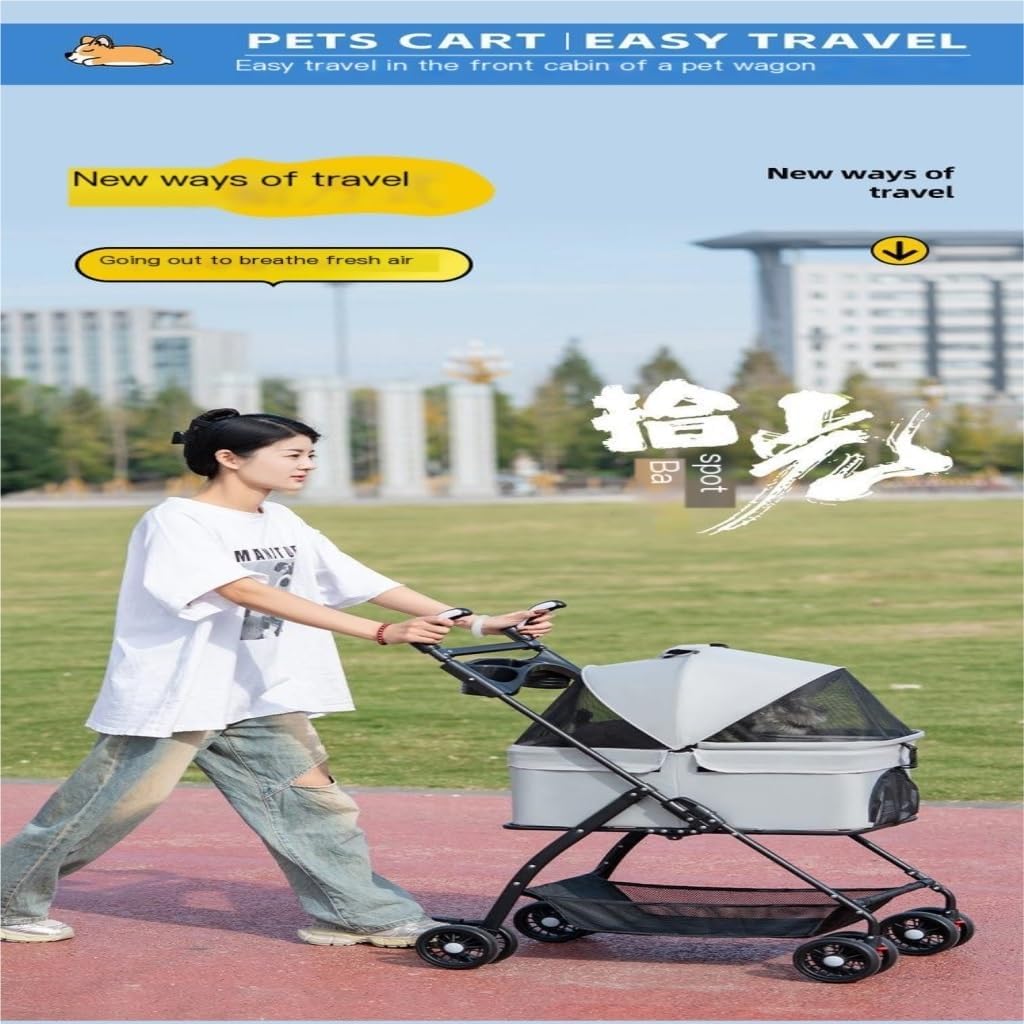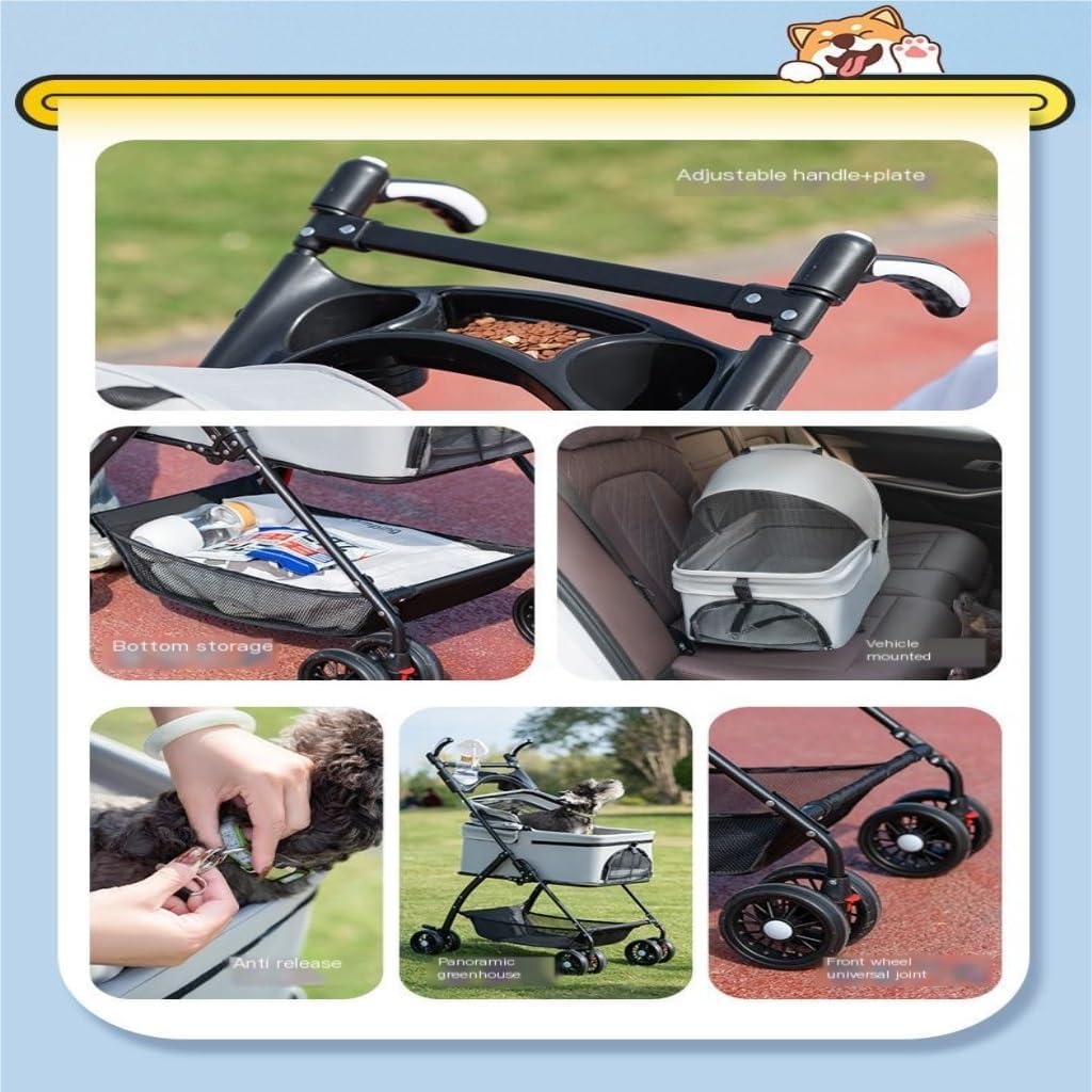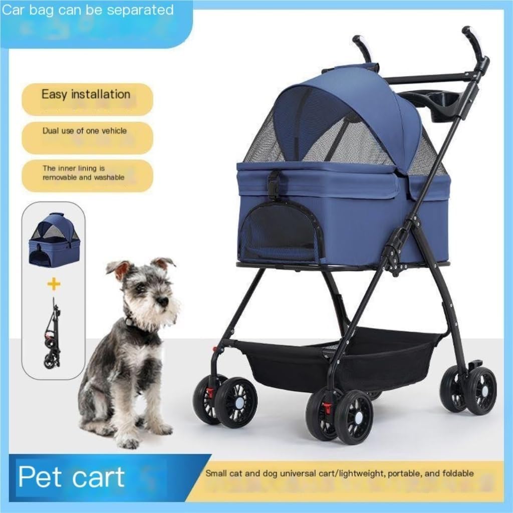Designed for families with pets, this pet stroller is perfect for dining out, veterinary visits, or road trips. It is suitable for small pets such as cats, rabbits, and ferrets, making it an ideal choice for families with different companions.Product name: Pet strollerMaterial:Color: multi-colorScope of application: cats, dogsLoad bearing: 20KgWeight: 6kgThis pet stroller can ensure a smooth and gentle ride for your furry friend, guaranteeing your pet a comfortable ride wherever you go, and protecting your pet from harsh elements such as rain, snow, dust, and heat.