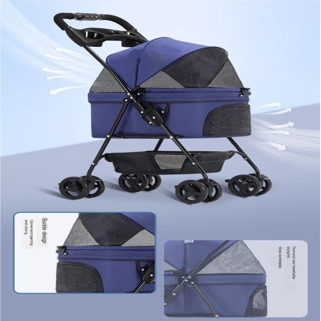 Designed for families with pets, this pet stroller is perfect for dining out, veterinary visits, or road trips. It is suitable for small pets such as cats, rabbits, and ferrets, making it an ideal choice for families with different companions.Product name: pet strollerApplicable objects: GeneralColor: as shown in the picturematerial: metalIs it foldable: YesPurpose of gift giving: Advertising giftsIs it a gift? Yes, business giftUnit weight: 9kgProduct volume: 84cm * 38cm * 17cmThis pet stroller can ensure a smooth and gentle ride for your furry friend, guaranteeing your pet a comfortable ride wherever you go, and protecting your pet from harsh elements such as rain, snow, dust, and heat.