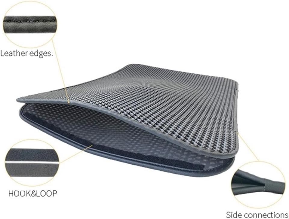 Our Cat Litter Trapper Mat is made of EVA material which is soft and gentle for the paws. The Double Layer Mat with Honeycomb Design is for catching the cat litter and dust. Using Water proof and Urine proof material. Easy Cleaning with vacumm or water.