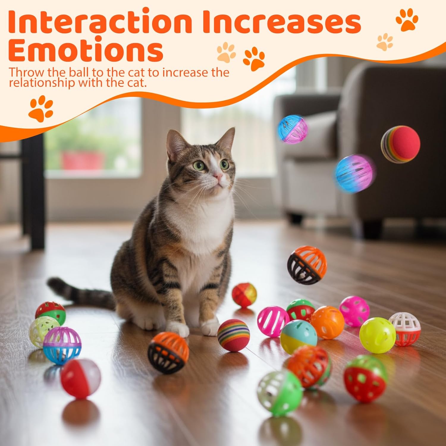Features: Visually Stimulating Colors: Colorful balls with bells come in an array of lively hues like pink, yellow, purple, blue, and green. These colors draw your cat's attention, enhancing its interest and encouraging playful exercise and exploration Enhance Agility and Coordination: These cat balls improve agility, reaction time, and paw-eye coordination. Suitable for independent play, they mimic hunting, reduce stress, and provide an outlet for your cat's energy, making it an ideal indoor entertainment. Specifications: Material: plastic Color: pink, yellow, purple, blue, green Size: Rainbow balls: about 3.2 cm/1.26 inch Hollow bells: about 3.8 cm/1.5 inch Package includes: 300 x Cat balls Notes: Manual measurement, please allow slight errors on size. The color may exist a slight difference due to different screen displays.