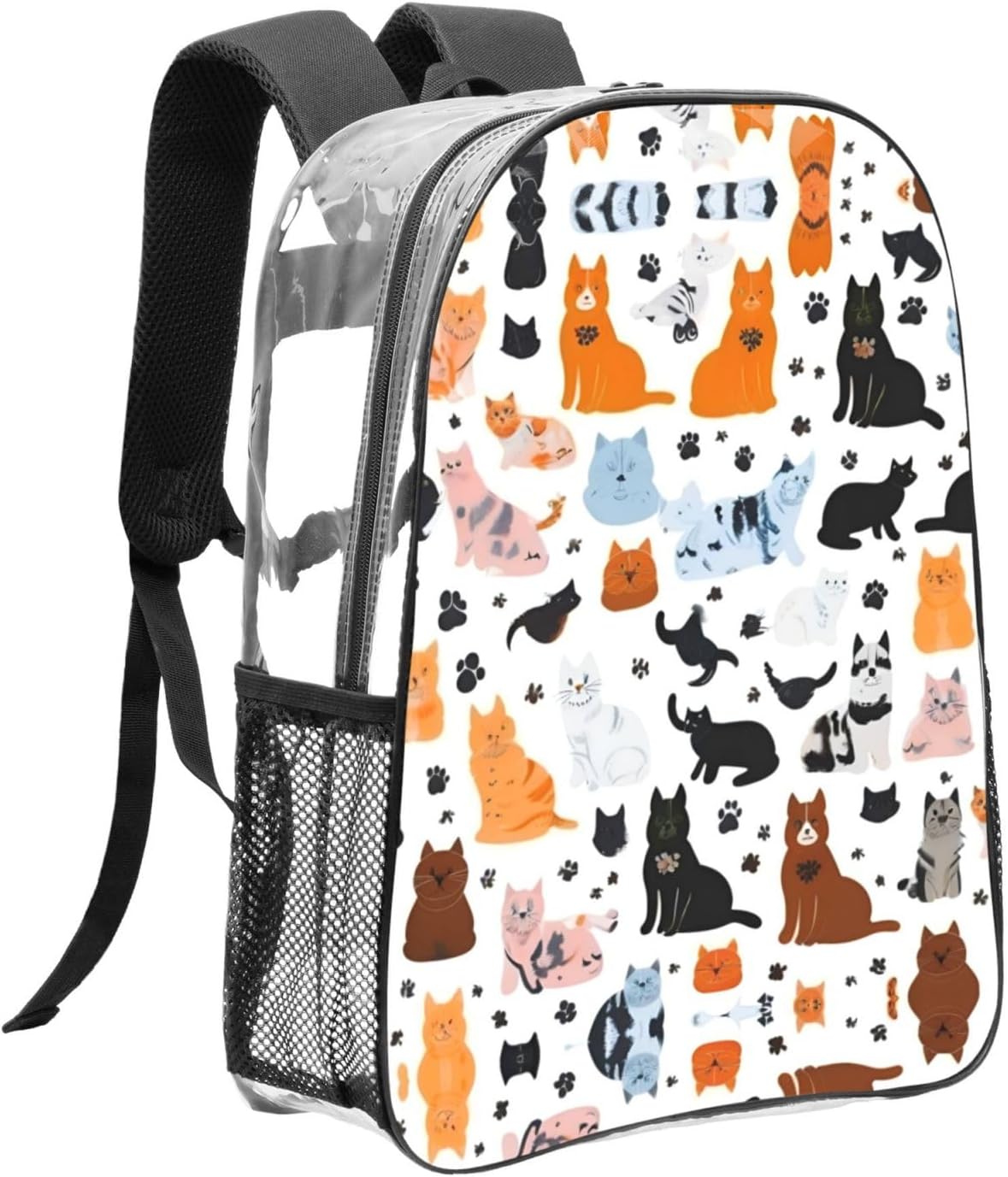 Perfect Size: 12.2''(L)X 5.1''(W)X 16.9"(H). The Cartoon Cat And Dog Clear Bag Is Completely Transparent Can Make The Security Check A Breeze, Not Only For Sport Events But Also For Stadiums, Concerts, Festivals, Football Games.Big Size And Roomy Enough: The Cartoon Cat And Dog Big Clear Backpack With Main Compartment Has Plenty Of Room For Phone, Cosmetics, And A Wallet. 2 Side Mesh Pocket Can Hold Bottle Or Foldable Umbrella. The Cartoon Cat And Dog Clear Backpack Could Packing All Your Daily Essentials.Upgraded Material: Specially Made Of High Quality Pvc Material, Which Make Transparent Clear Backpack Easy To Clean. The Clear Backpack Sturdy Durable And Flexible, Suitable Long Lasting.Fashionable Clear Bag: The Unique Design Makes Our Cartoon Cat And Dog Clear Backpack Outstanding. It'S The Best Choice For Anyone Who Values Style, Function, And Convenience. And We Adopted Premium Double Zippers, It Is Sturdy And Smoothly.