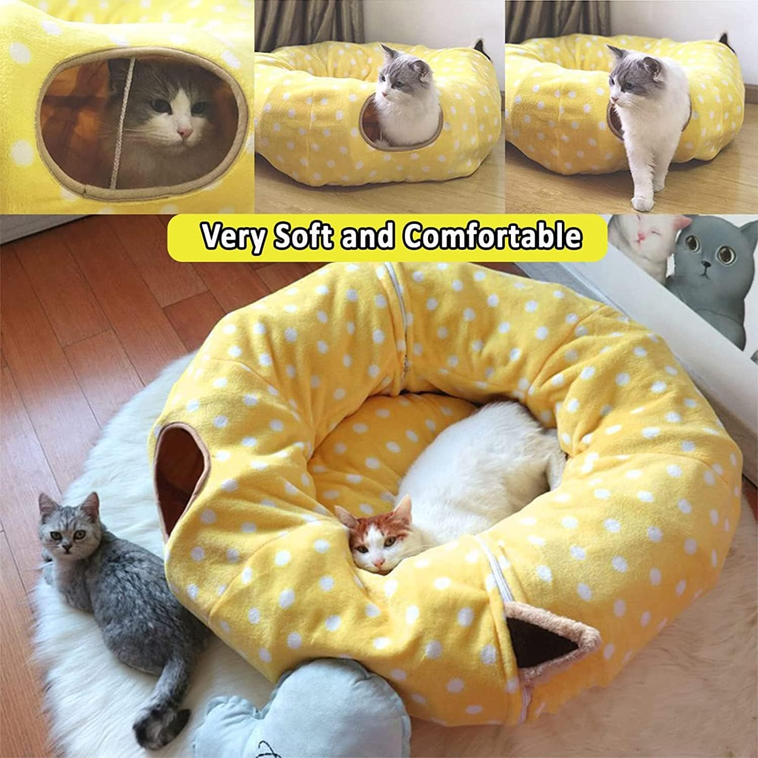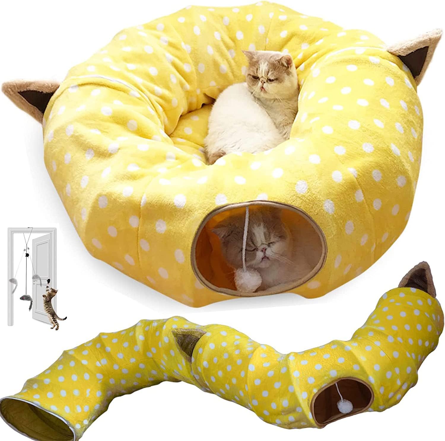 Provides greater comfort and flexibility to suit your pet's needs.Dangling Ball entice and encourage cats to play and bring additional fun. The cats to see out and you could play wand with it. It has a collapsible structure thatallows rolling and folding it into your car or suitcase making it convenient to travel with. Features: Excellent for pets’ physical exercise Keeps your pet entertained Multiple tunnels can be connected to form a super long tunnel Hanging ball entices pets to play with it Can be easily carried and stored Package includes: Catbed * 1Tips:Please confirm the pet size and product size.Please allow a little measuring deviation due to manual measurement. Due to the different display screen and light effect, the actual color of the item might be slightly different from the color showed on the pictures.Our proprietary fabric bottom eliminates floor scratches, provides stability and durability.