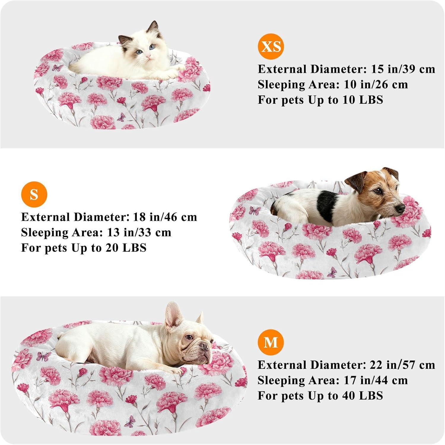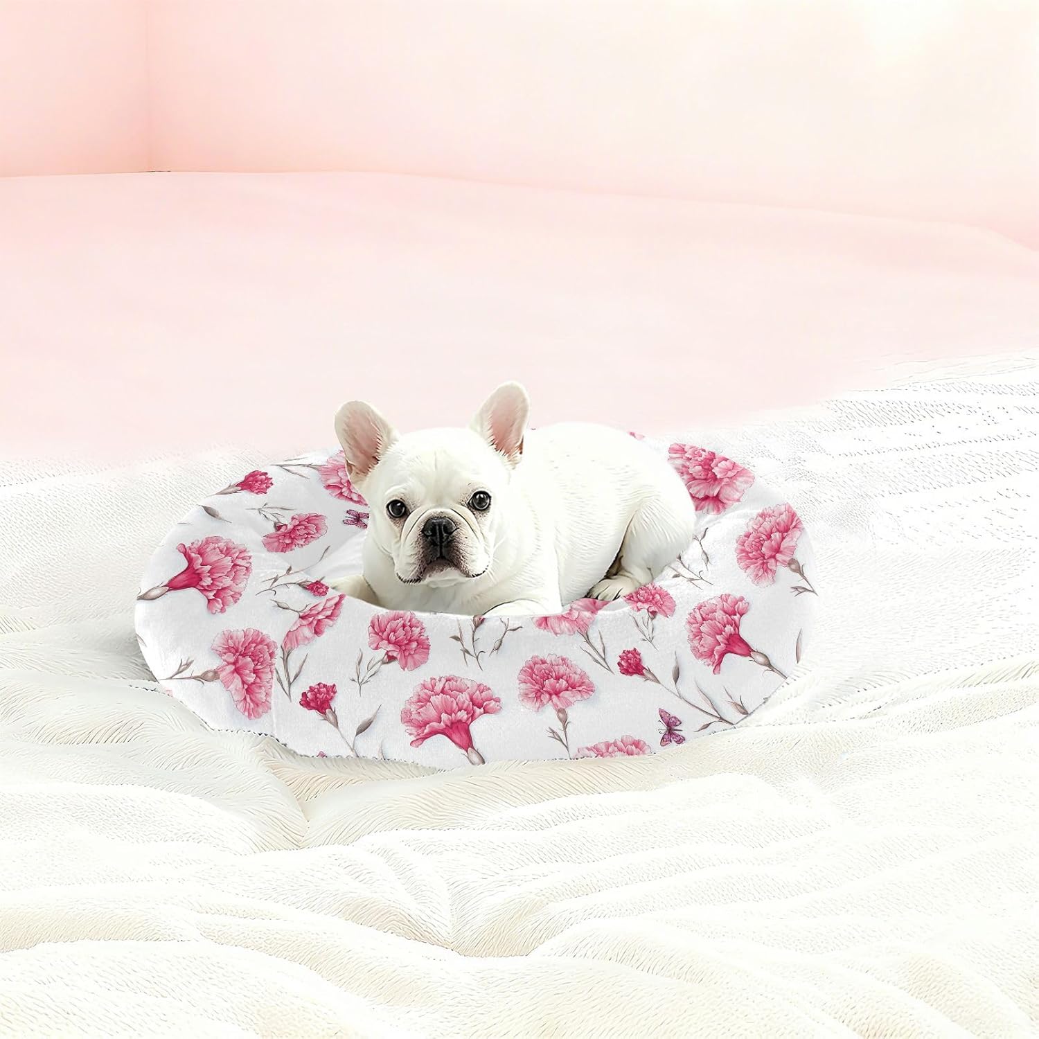 Material: Polyester + Filled Fiber + Drip Plastic. Our Cat Pillow Bed is designed in a donut style and made of soft plush fabric, which has a fine and smooth touch and can bring a warm and comfortable feeling to pets.Product Design: The overall shape is circular, with a concave middle part and a raised edge part. It can be used for pets to curl up and lean on, preventing them from rolling down while sleeping to gain a sense of security. Cat Pillow Bed is very suitable for young and elderly pets.Lightweight And Portable: This comfortable bed is light in weight, making it convenient for travel. It is very convenient for transportation and can be easily carried in the car. This Cat Pillow Bed can keep your pet comfortable when camping and traveling outdoors.Easy To Clean: This Cat Pillow Bed is also designed with a detachable and washable structure, making it convenient for pet owners to clean it regularly and keep the bed clean and hygienic, which is beneficial to the health of their pets.