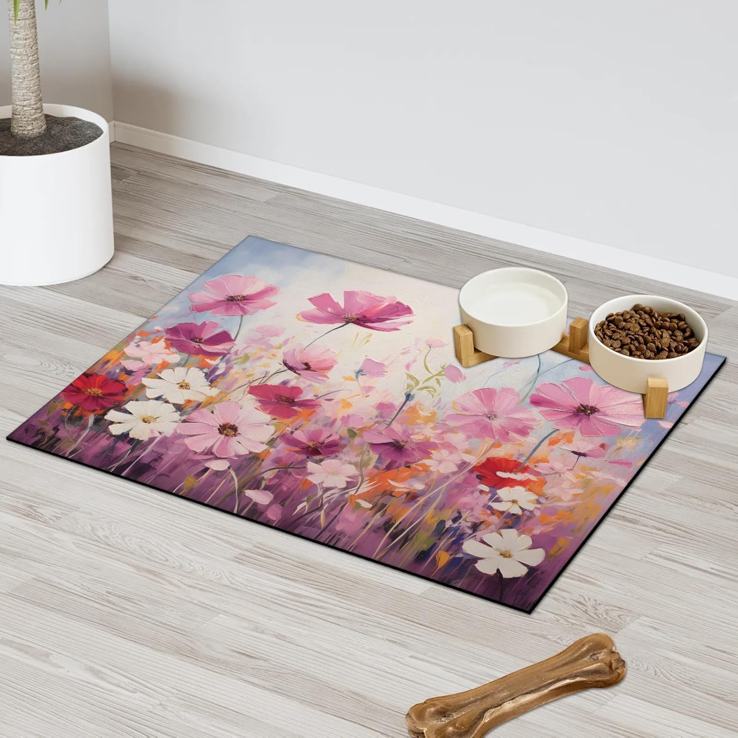 Pet Food Mat:Our company specializes in kitchen home products. The pet feeding mat provides the best decoration and protection for your floor. cat food mat measures 24 x 32 inches and is suitable for large dogs or puppies. The product specification is 1 pcs pet placemat. Dog bowl mat is made of diatomaceous earth material, with a water-absorbent backing to keep the floor clean.Dog and cat food mat can be placed under feeders, water bowls, litter boxes, etc., to prevent pets from wandering around. Dog food mat is washable by hand or machine and can be reused. It is suitable for use in homes, restaurants, kitchens, hotels, and business offices.