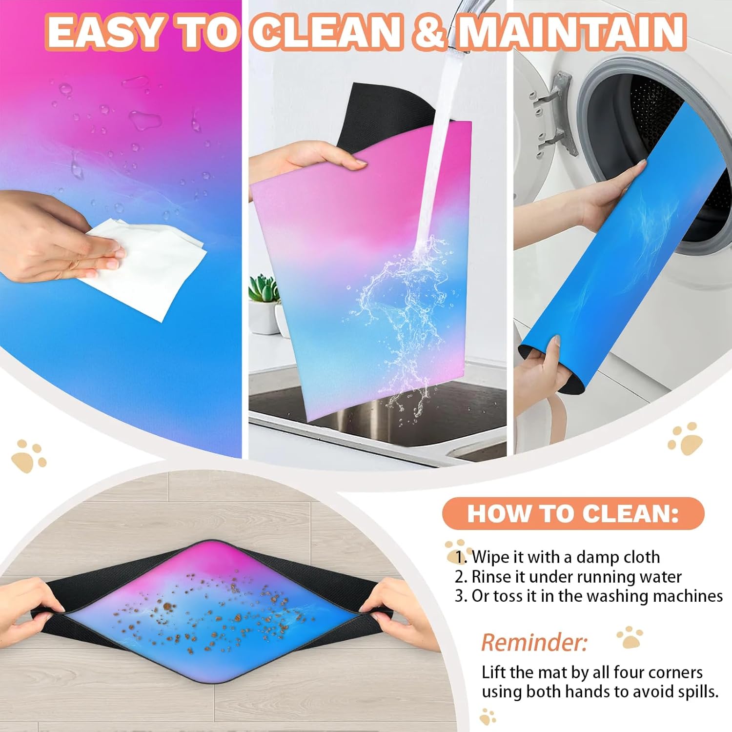 Pet Food Mat:Our company specializes in kitchen home products. The pet feeding mat provides the best decoration and protection for your floor. cat food mat measures 24 x 32 inches and is suitable for large dogs or puppies. The product specification is 1 pcs pet placemat. Dog bowl mat is made of diatomaceous earth material, with a water-absorbent backing to keep the floor clean.Dog and cat food mat can be placed under feeders, water bowls, litter boxes, etc., to prevent pets from wandering around. Dog food mat is washable by hand or machine and can be reused. It is suitable for use in homes, restaurants, kitchens, hotels, and business offices.