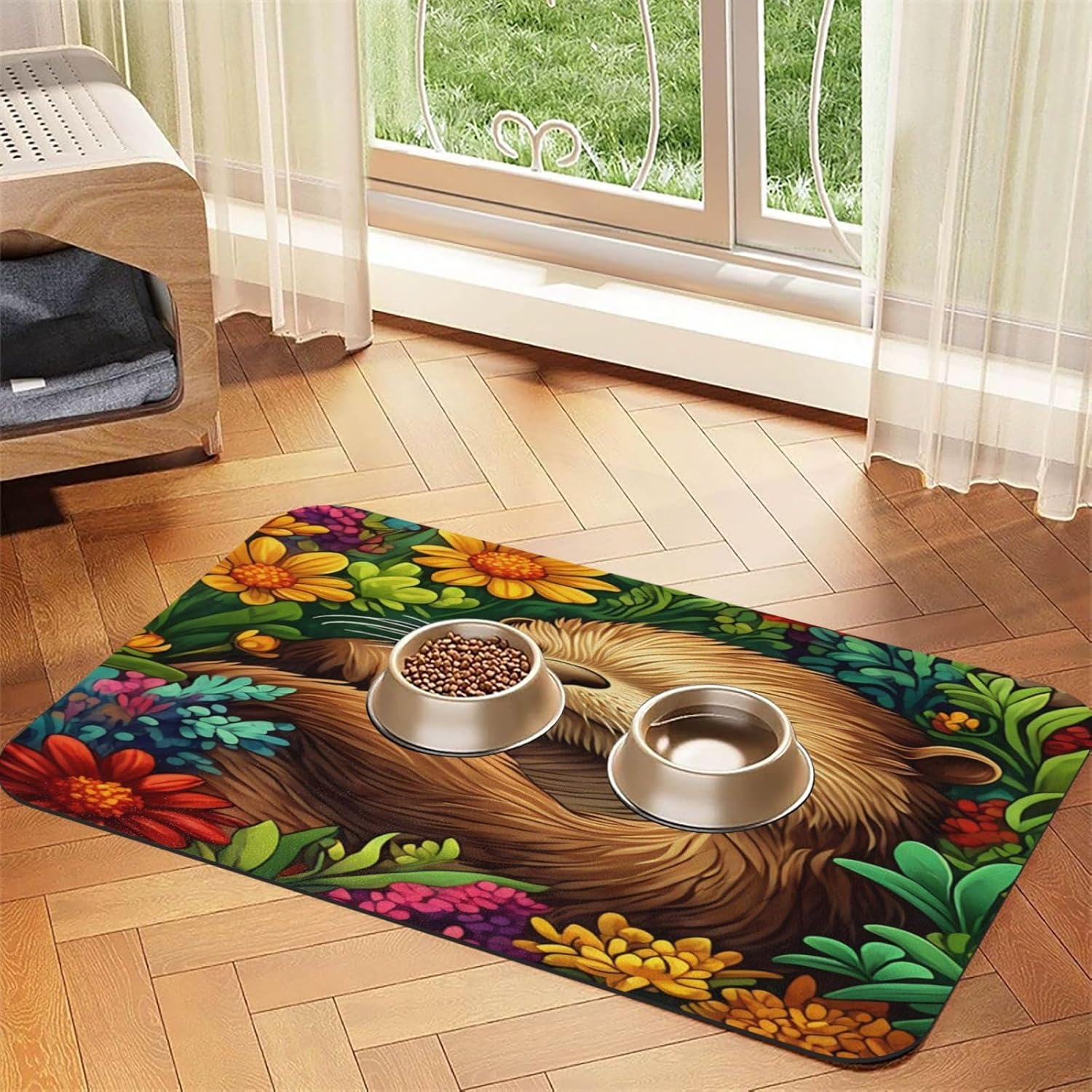 Tired of dealing with messy pet spills?Our Pet Feeding Mat is here to save the day!It acts like a super - sponge, instantly absorbing any spilled liquids during your pet's feeding frenzy.With its non - slip grip, it stays put, and the leak - proof design protects your floors.Cleaning is a breeze—just a quick wipe!Exquisite prints make it a beautiful decoration,it's a must - have for every pet owner and a great gift too!
