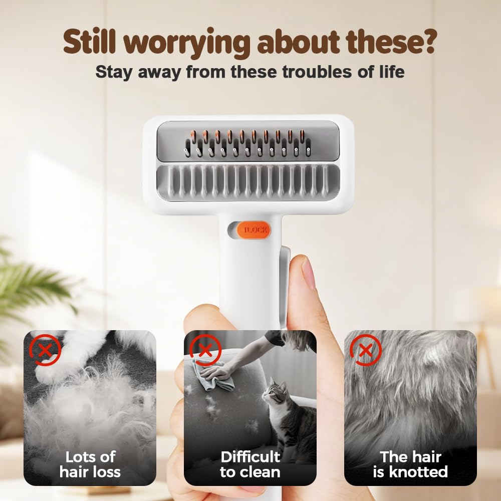 Specifications:Product Name: 2-in-1 Pet Self-Detangling & Grooming CombMaterial: Stainless Steel & Eco-friendly RubberWeight: 100gDimensions: 80*62*164 mmPackage Includes:1 x 2-in-1 Pet Self-Detangling & Grooming Comb